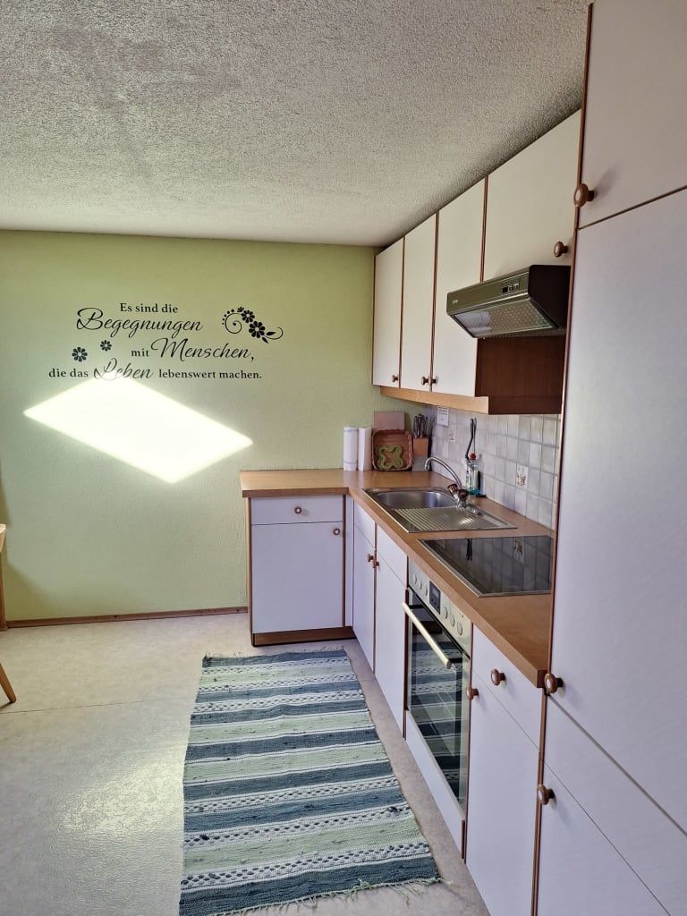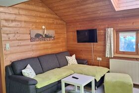 Die voll ausgestattete Wohnküche inklusive Couch und TV lädt zum gemeinsamen Kochen und Verweilen ein.