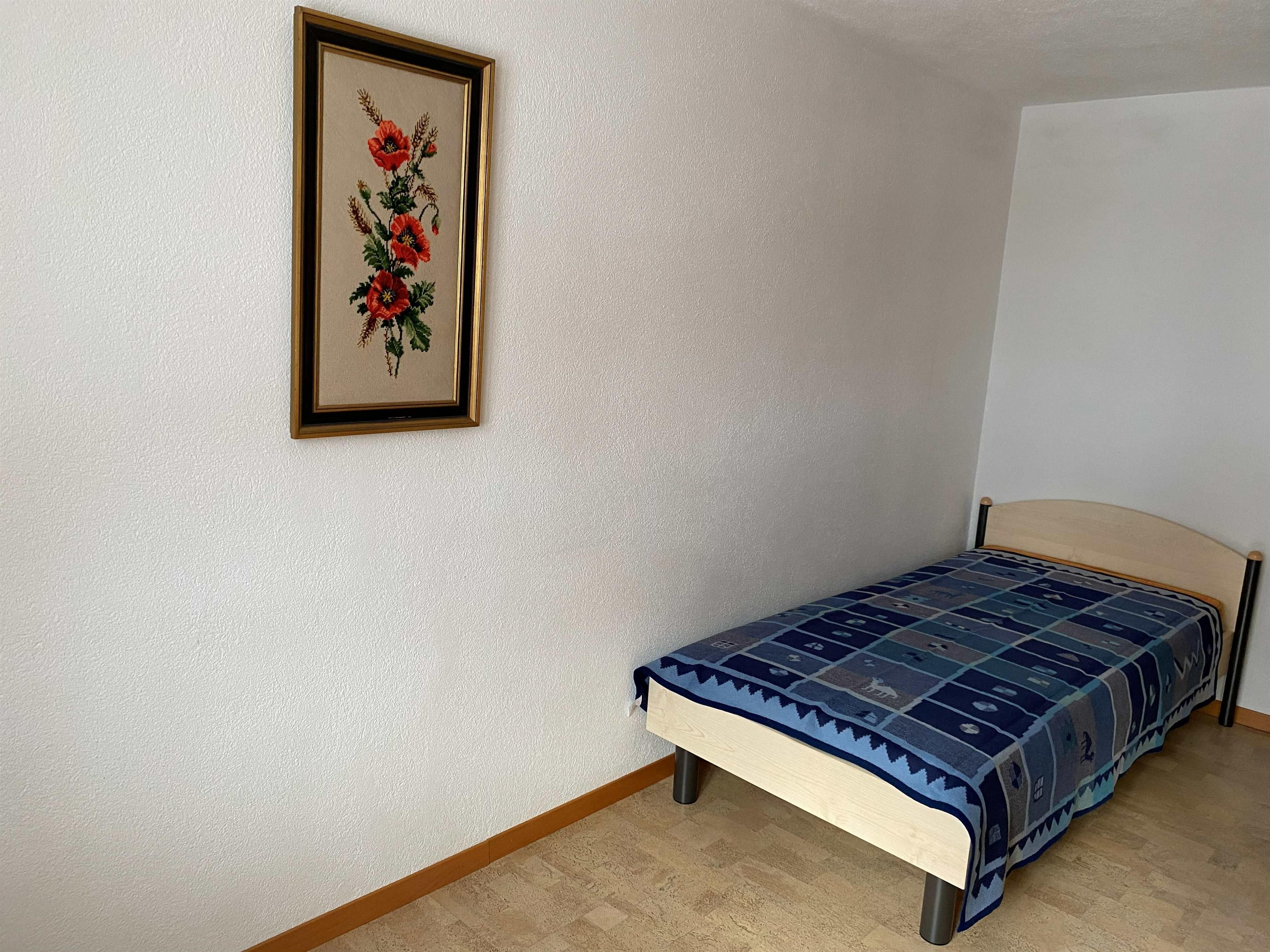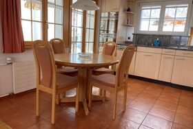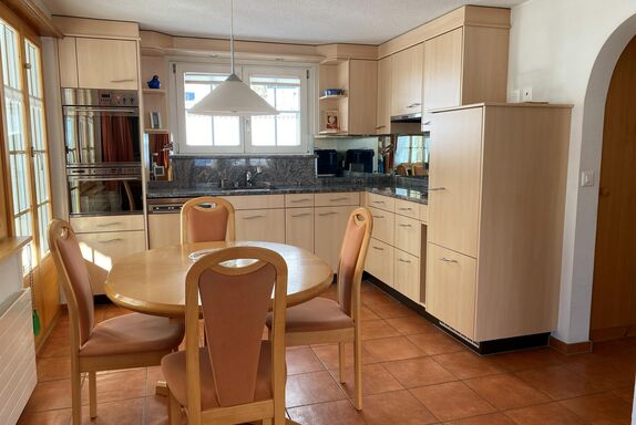 Die Wohnung umfasst ein grosszügiges, helles Wohnzimmer mit integrierter Küche, ein Schlafzimmer mit Doppelbett (auch trennbar), zwei Einzelzimmer, ein Bad mit Dusche/WC sowie einen unbeheizten separaten Wintergarten (ca. 7 m²). Der Wohnraum ist ausgestattet mit Sofa, TV/Radio und WLAN. Die Küche verfügt über Kühlschrank mit Gefrierfach, Kochherd, Backofen, Steamer, Geschirrspüler, Jura-Kaffeemaschine (Bohnenmahlwerk), Wasserkocher, Toaster, Fondueset, Racletteset, ausreichend Geschirr und allen üblichen Küchenutensilien.