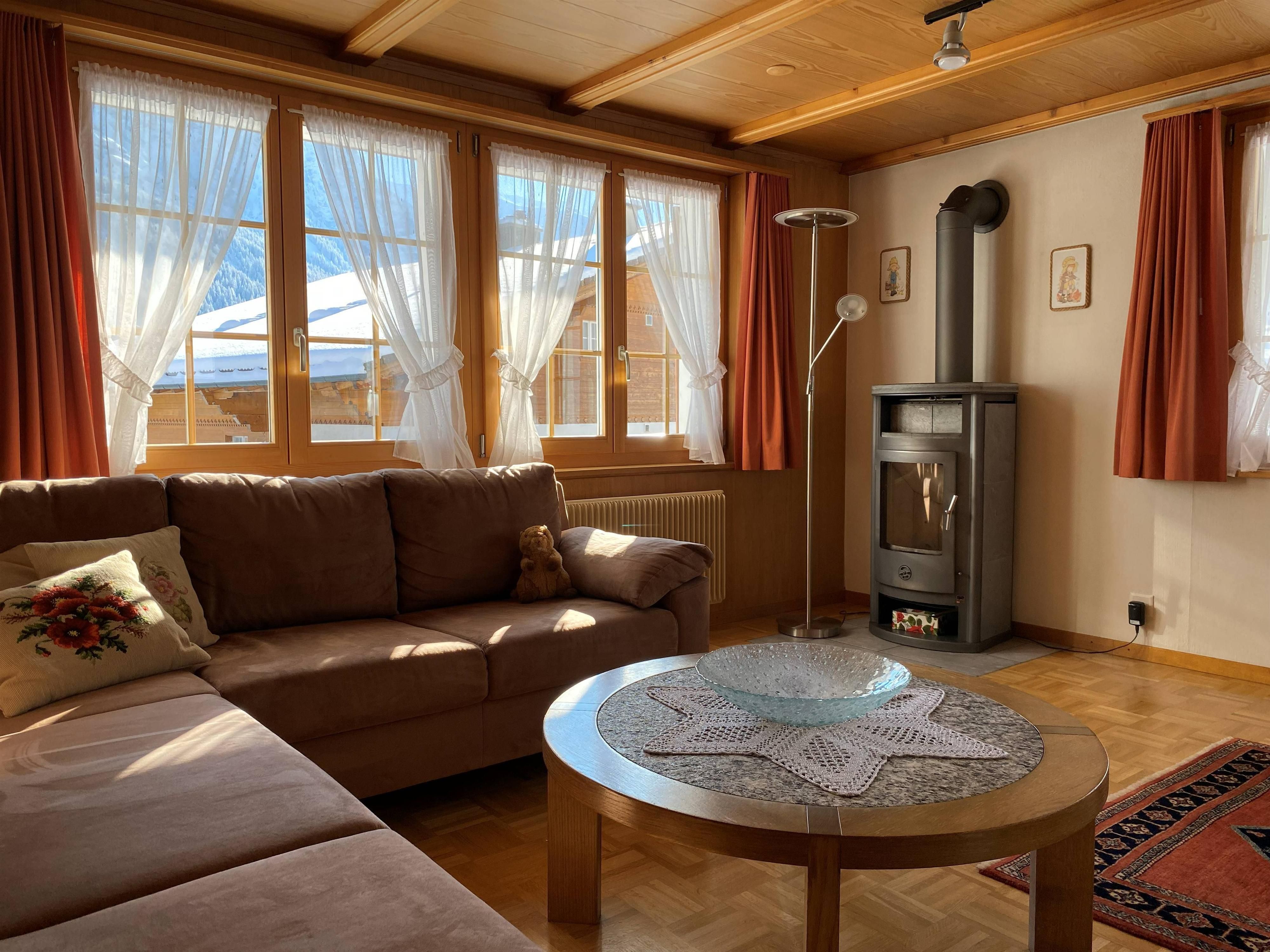 Umgebung: Die Bushaltestelle ist in 4 Minuten, ein Lebensmittelgeschäft mit Bäckerei in etwa 10 Minuten zu Fuss erreichbar. Restaurants, Wanderwege, Bikerouten sowie die Langlaufloipe befinden sich in unmittelbarer Nähe. Die Talstation des Skigebiets Chuenisbärgli liegt nur 400 m entfernt. Die Bergbahnen und das Dorfzentrum erreichen Sie zu Fuss in rund 15 Minuten.