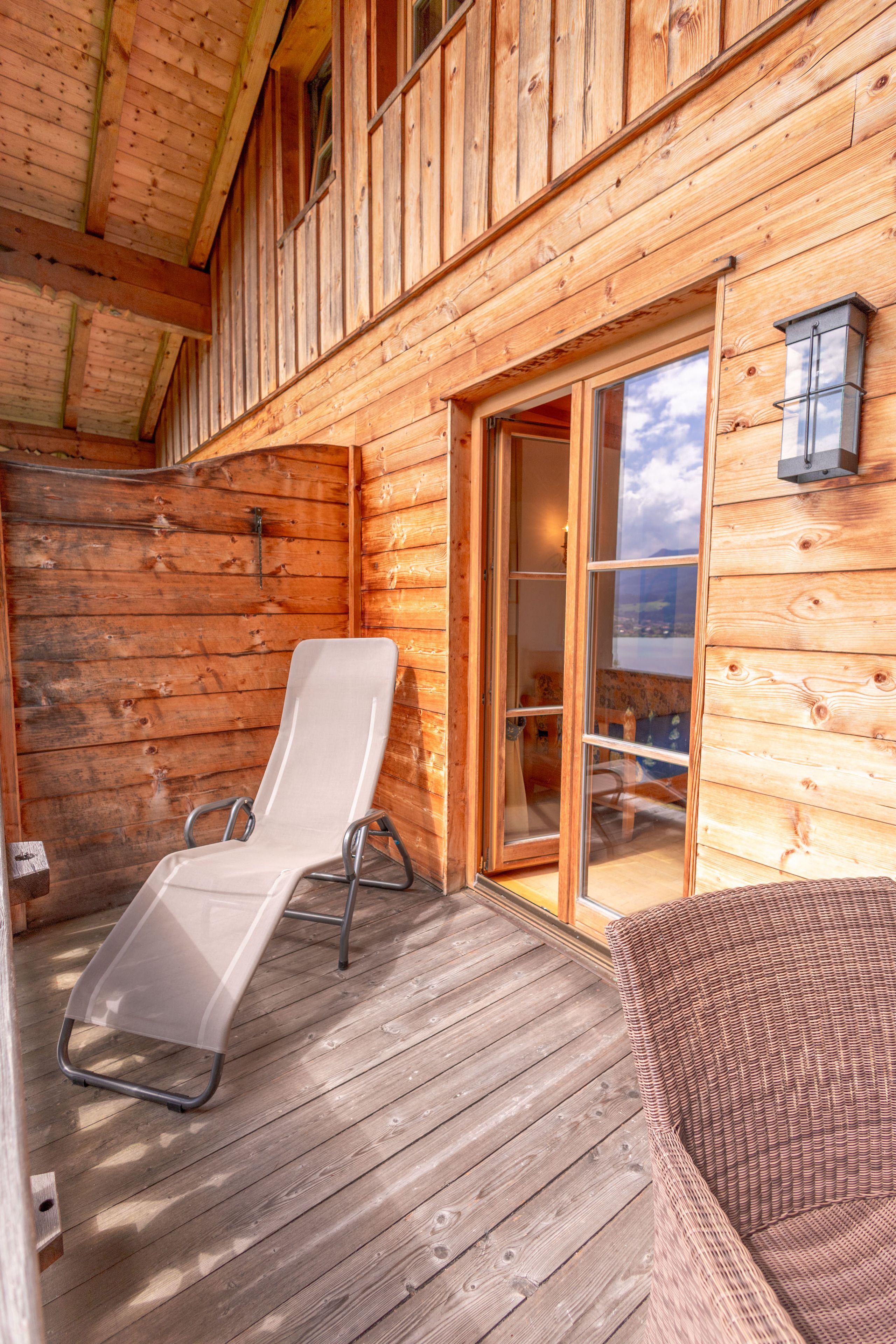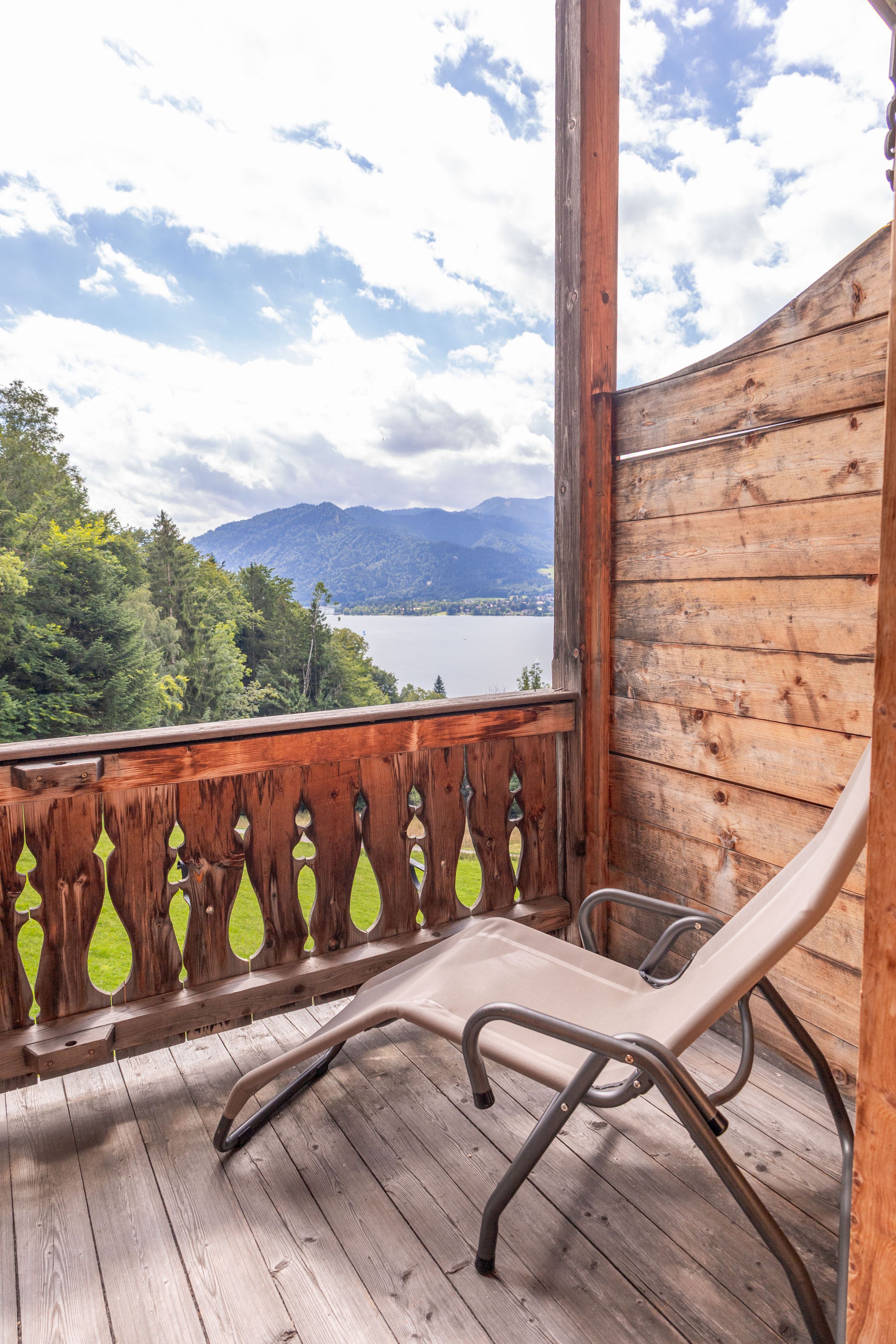 Der Wohnbereich mit integrierter Küche lädt zum Verweilen ein und bietet alle Annehmlichkeiten, die man während des Aufenthalts benötigt. Vom Balkon aus genießt man einen herrlichen Seeblick und kann die frische Luft des Tegernsees einatmen.