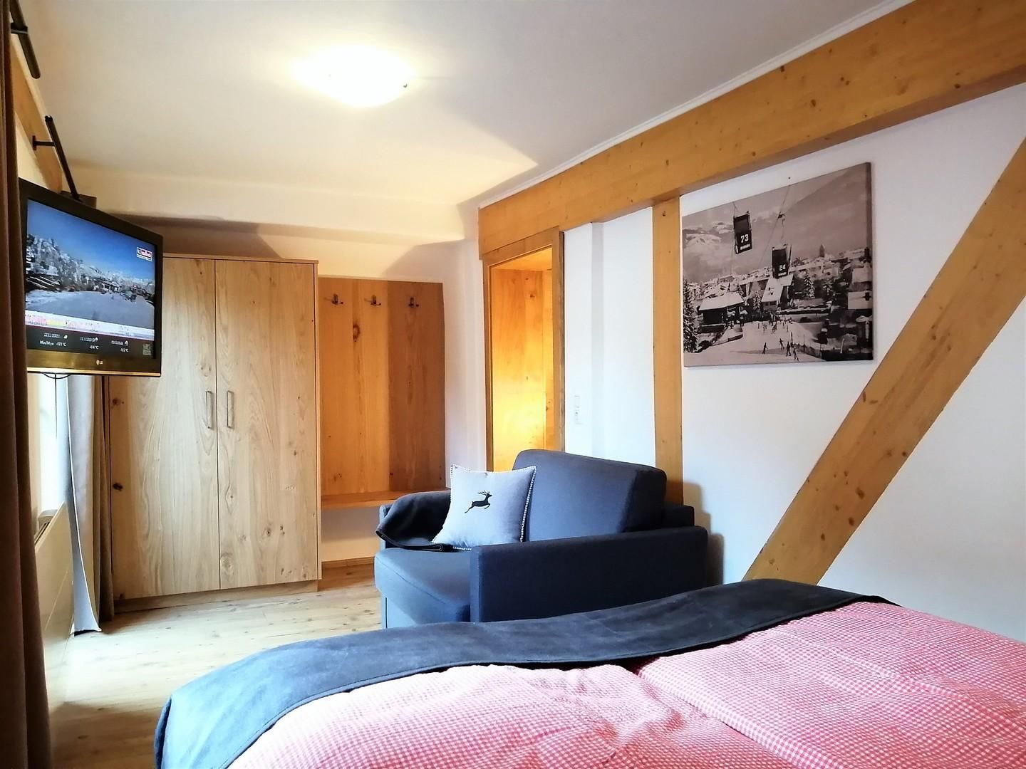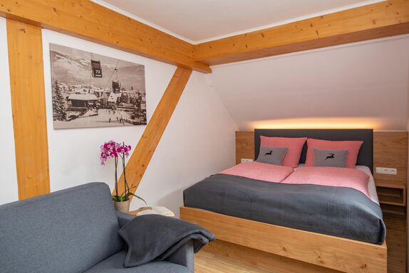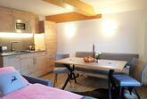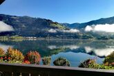 Die Panorama Suite #6 mit Balkon und Seeblick im 3. Stock bietet auf 55 m² Platz für bis zu 4 Personen. Sie verfügt über ein Schlafzimmer mit Doppelbett sowie eine Schlafcouch im Wohnbereich für 2 Personen. Die Wohnküche mit Balkon bietet Seeblick und einen gemütlichen Esstisch. Die voll ausgestattete Kitchenette umfasst Geschirrspüler, Mikrowelle, Herd mit 2‑Platten‑Cerankochfeld, Backofen, Toaster, Tassimo-Kaffeemaschine, Wasserkocher und mehr. Das Badezimmer ist großzügig gestaltet und verfügt über Dusche, Eckbadewanne, Haartrockner sowie ein separates WC. WLAN und Flachbild-TV über Kabel stehen sowohl im Wohn- als auch im Schlafzimmer zur Verfügung. Genießen Sie einen atemberaubenden Panoramablick auf den Zeller See und die umliegenden Berge.