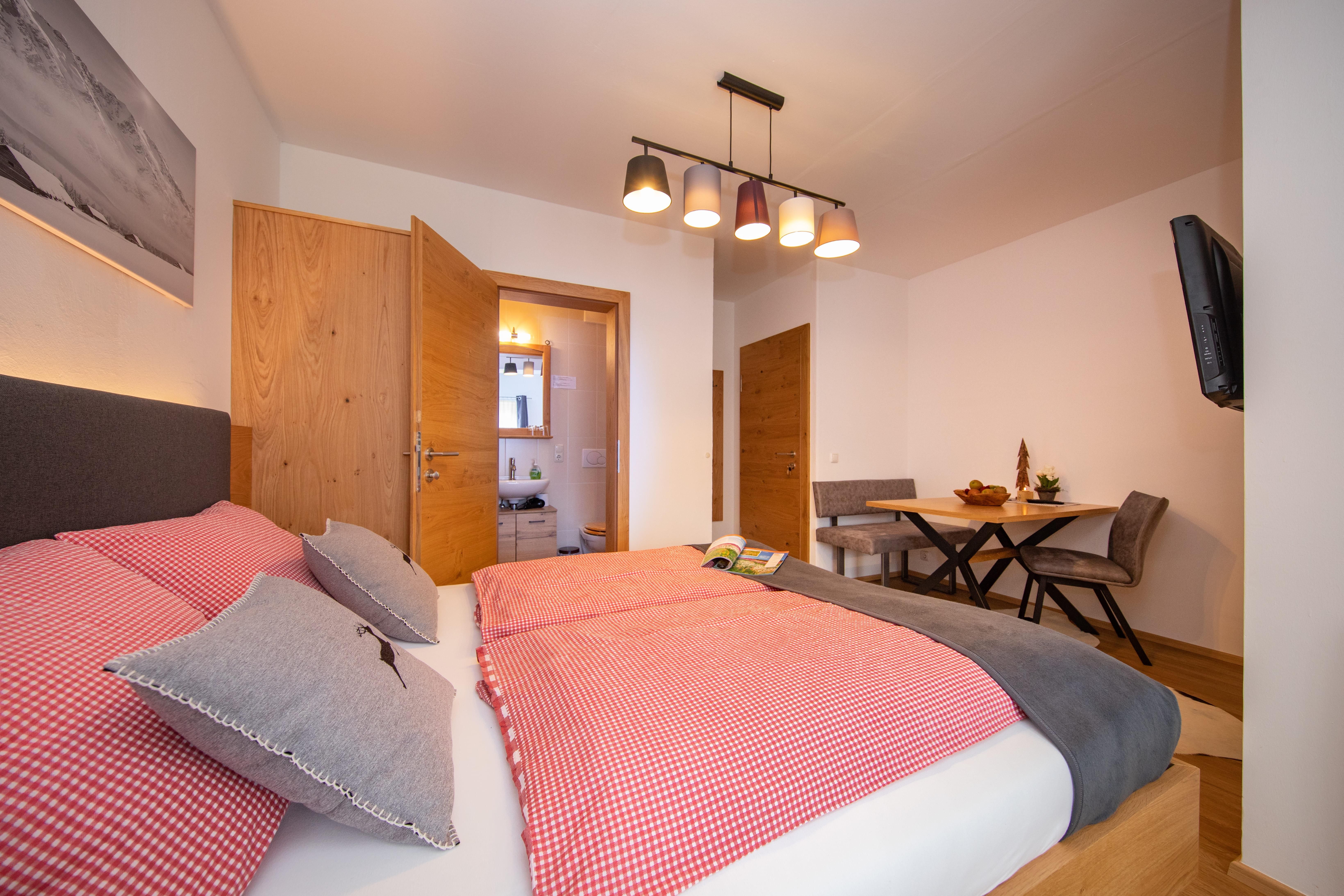 Das Zweiraum-Apartment #3 mit Balkon und Seeblick im 1. Stock bietet auf 40 m² Platz für bis zu 3 Personen. Es verfügt über ein Doppelbett sowie ein zusätzliches Einzelbett als Schlafgelegenheit. Die Küche mit Essbereich ist voll ausgestattet und bietet Geschirrspüler, Mikrowelle, 4‑Platten‑Cerankochfeld mit Backofen, Wasserkocher, Tassimo-Kaffeemaschine, Toaster, kleine Kaffee- und Teeaustwahl, Kontaktgrill, Geschirr und Reinigungsutensilien. WLAN und ein Flachbild-TV über Kabel stehen ebenfalls zur Verfügung. Das Badezimmer verfügt über Dusche, WC, Haartrockner, Hand- und Badetücher, Handseife und Toilettenpapier.
