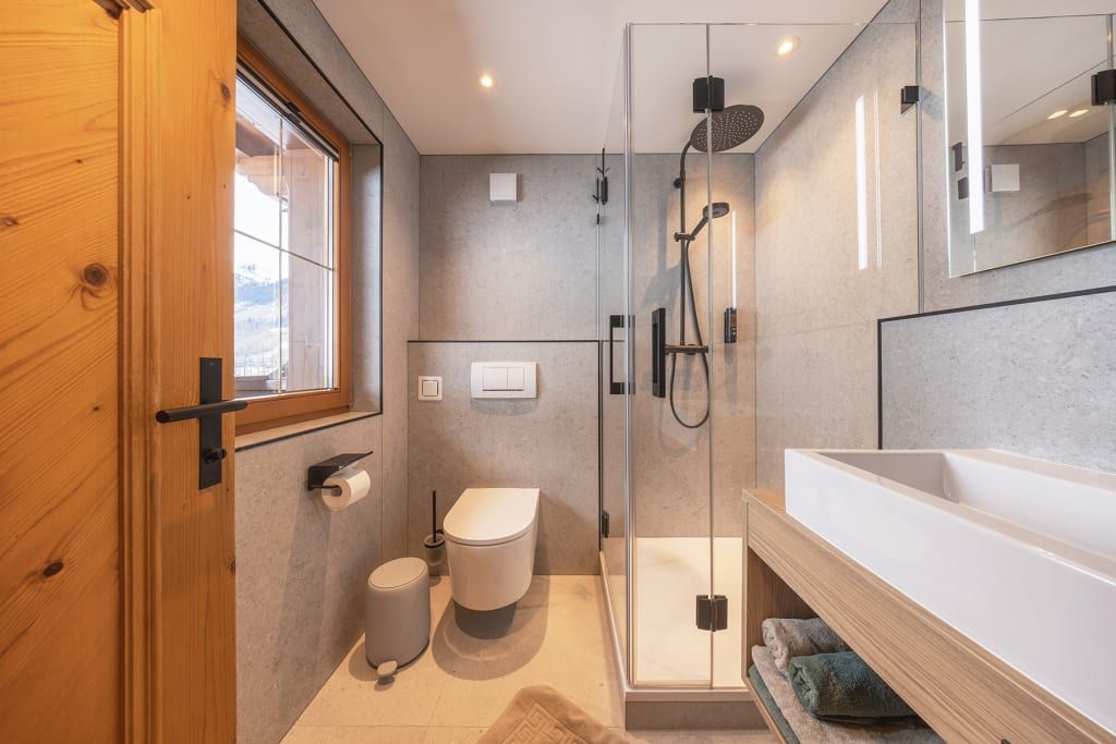 Genieße den Sonnenaufgang und die exklusive Aussicht auf die Berglandschaft auf dem geräumigen Balkon.