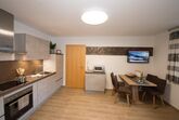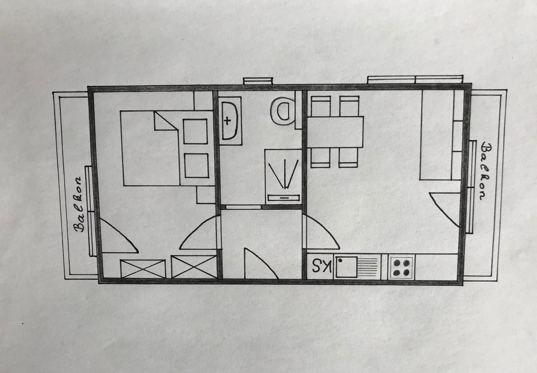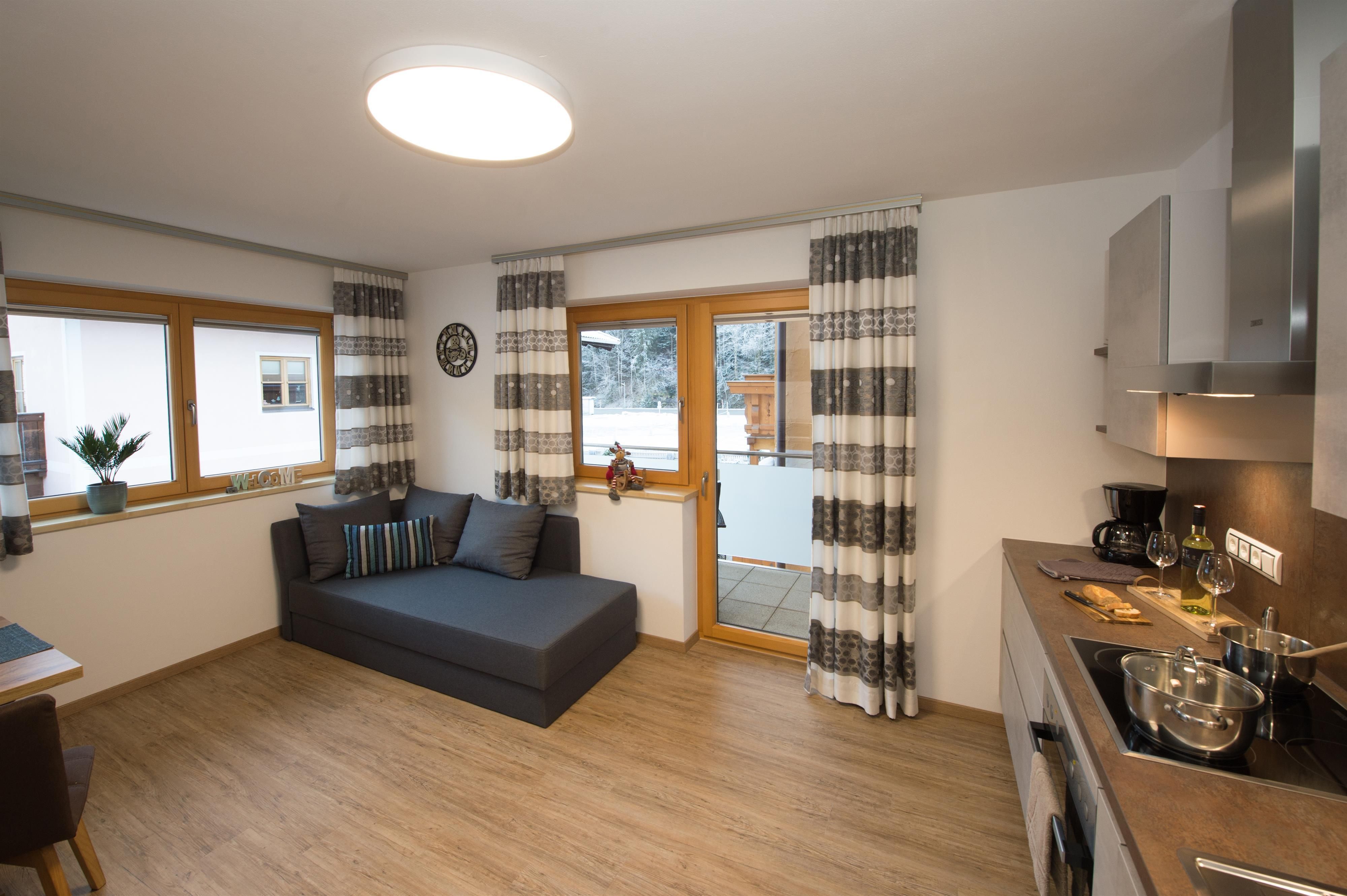 In der Ferienwohnung befindet sich ein kleiner Vorraum, eine bestens ausgestattete Küche mit Ess- und Wohnbereich, Flat-TV, Schlafcouch und Balkon, ein Schlafzimmer mit Doppelbett, Flat-TV und Balkon, ein Badezimmer mit Dusche, WC, Waschbecken und natürlich kostenfreies W-lan.