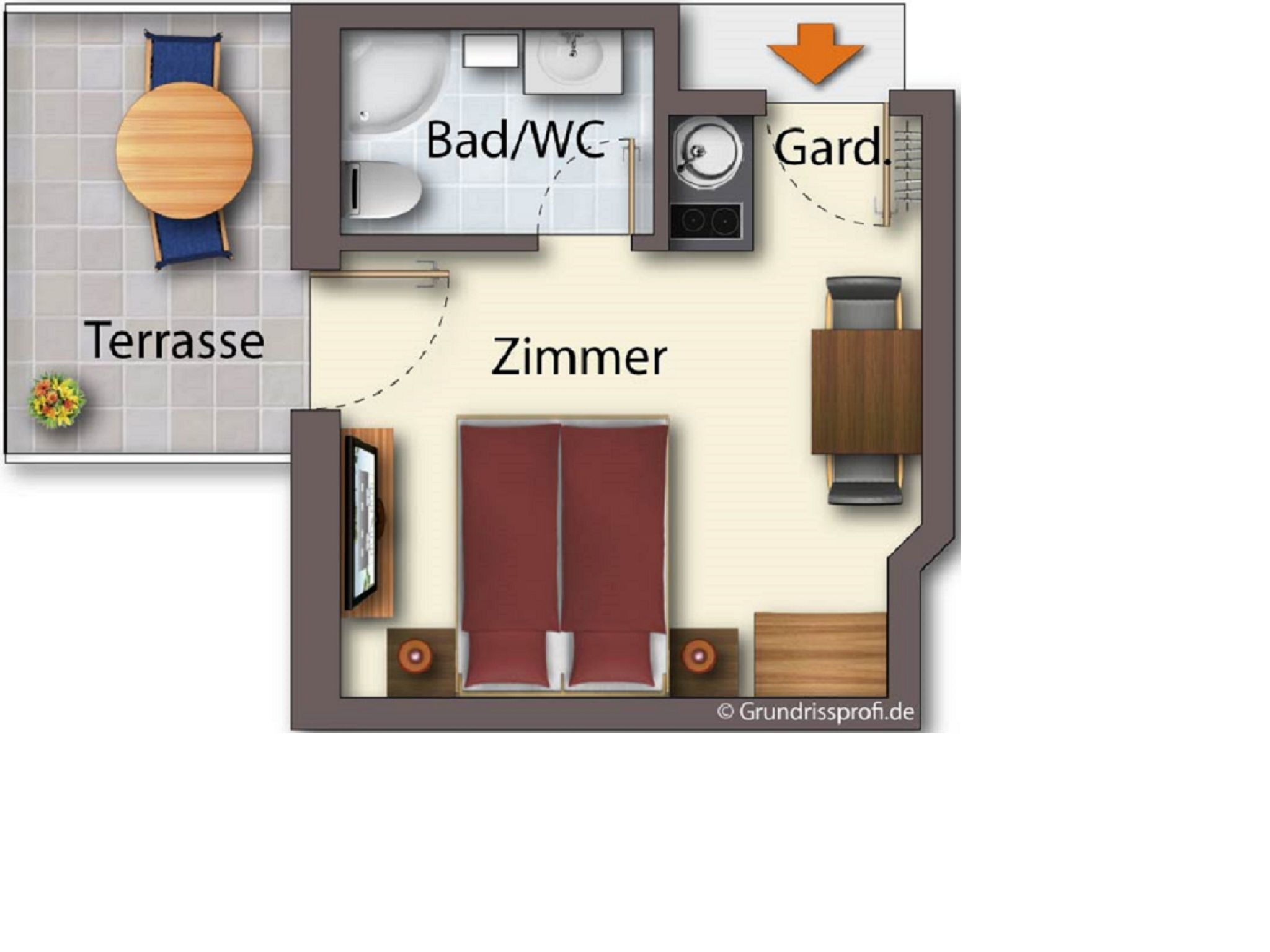 • Wohn/Schlafraum kombi.