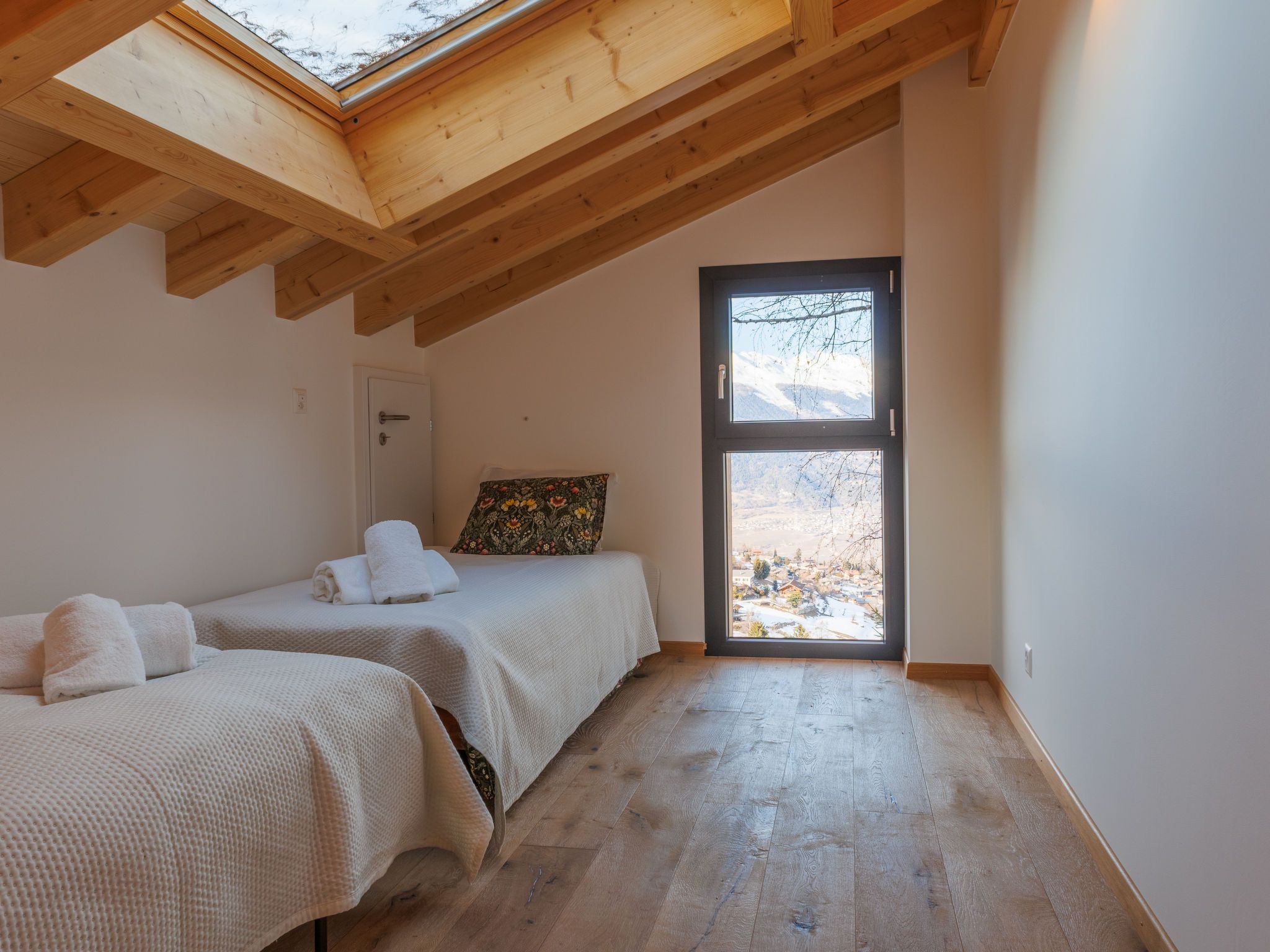 Byzance, 6-Zimmer-Chalet 150 m2 auf 3 Stockwerken. Vollständig renoviert im Jahre 2025, komfortabel und schön eingerichtet: unteres Geschoss: 1 Zimmer mit 1 Diwanbett (140 cm, Länge 200 cm). Ausgang zum Garten. Dusche/WC. Obergeschoss: Wohn-/Esszimmer mit Schwedenofen und Sat-TV. Ausgang zum Balkon, Richtung Norden. Büro. 1 Zimmer mit 1 Doppelbett (160 cm, Länge 200 cm). Offene Küche (Backofen, Geschirrspüler, 4 Induktionskochplatten, Toaster, Wasserkocher, Mikrowelle, elektrische Kaffeemaschine, Kapseln für die Kaffeemaschine (Nespresso), Racletteofen, Fondue Set (Käse)). Ausgang zur Terrasse, Richtung Westen. Dusche/WC. 2. Obergeschoss: 1 Zimmer mit 1 franz. Bett (180 cm, Länge 200 cm). 1 Zimmer mit 2 Betten (90 cm, Länge 200 cm). Dusche/WC. Fussbodenheizung. Balkon, Terrasse, Garten. Sehr schöne Sicht auf die Berge. Zur Verfügung: Waschmaschine, Wäschetrockner, Haartrockner. Internet (WLAN, gratis). Parkplatz (2 Autos). Bitte beachten: Nichtraucher-Unterkunft. Rauchmelder.
