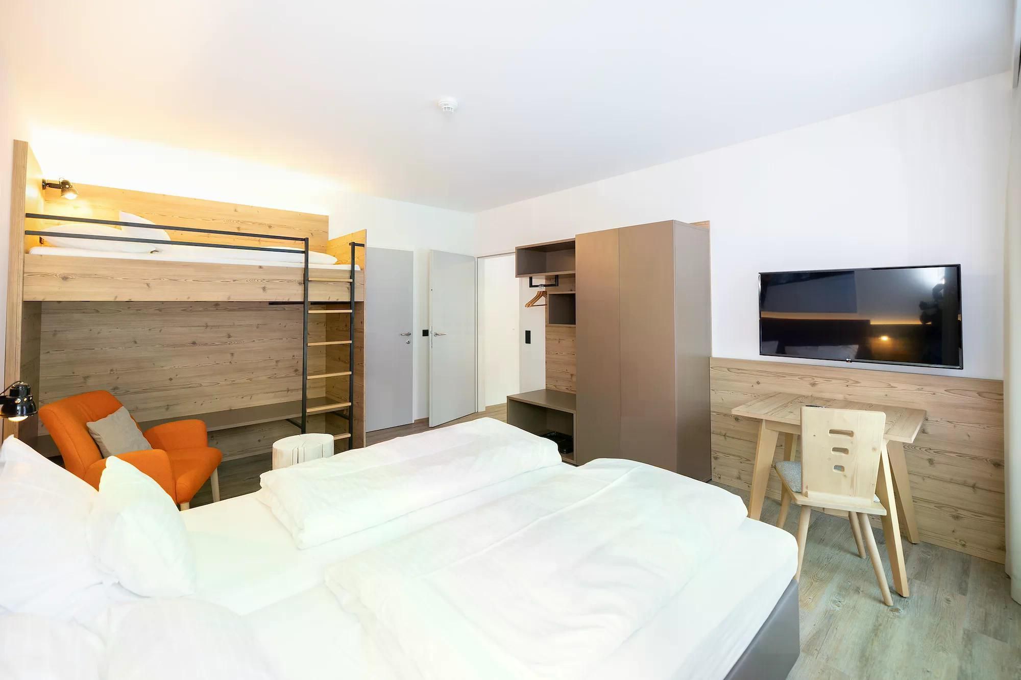 Übernachten Sie im Apartment Elisabethsee im Dormio Aparthotel Hinterstoder. Dieses moderne Apartment in den österreichischen Alpen bietet Platz für bis zu 8 Personen. Das einstöckige Apartment befindet sich im Erdgeschoss und hat eine Nutzfläche von ca. 75 m². Das großzügige Wohnzimmer ist mit einer komfortablen Sitzecke mit einem Smart-TV, auf dem Sie Inhalte streamen können, ausgestattet. Außerdem gibt es eine Essecke und eine Küchenzeile. Hier verfügen Sie unter anderem über eine Kombi-Mikrowelle, Geschirrspüler, Nespresso-Maschine, einem Kühlschrank mit Gefrierfach und einem 2-Platten-Kochfeld. Außerdem gibt es im Apartment einen Safe, den Sie kostenlos nutzen können.
