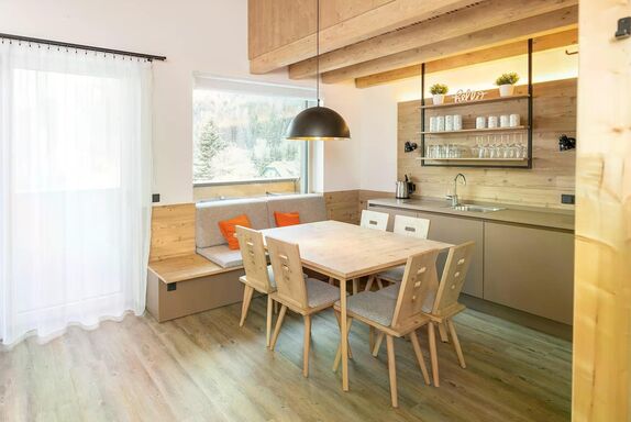 Übernachten Sie im Apartment Elisabethsee im Dormio Aparthotel Hinterstoder. Dieses moderne Apartment in den österreichischen Alpen bietet Platz für bis zu 8 Personen. Das einstöckige Apartment befindet sich im Erdgeschoss und hat eine Nutzfläche von ca. 75 m². Das großzügige Wohnzimmer ist mit einer komfortablen Sitzecke mit einem Smart-TV, auf dem Sie Inhalte streamen können, ausgestattet. Außerdem gibt es eine Essecke und eine Küchenzeile. Hier verfügen Sie unter anderem über eine Kombi-Mikrowelle, Geschirrspüler, Nespresso-Maschine, einem Kühlschrank mit Gefrierfach und einem 2-Platten-Kochfeld. Außerdem gibt es im Apartment einen Safe, den Sie kostenlos nutzen können.