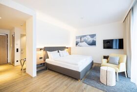 Genießen Sie einen entspannten Aufenthalt in den österreichischen Alpen und buchen Sie dieses moderne Studio im Dormio Aparthotel Hinterstoder! Das 2-Personen-Studio Gleinkersee verfügt über eine eigene Terrasse mit Bergblick. Die Unterkunft hat eine Nutzfläche von 34 m² und befindet sich im Erdgeschoss des Hotels.