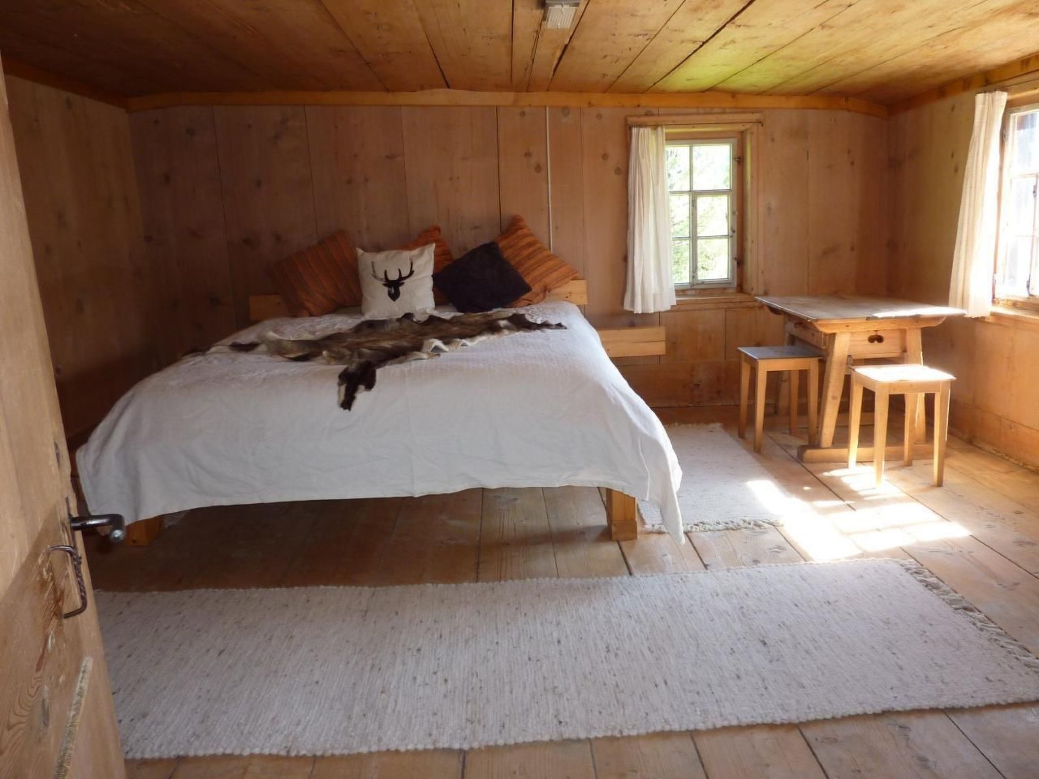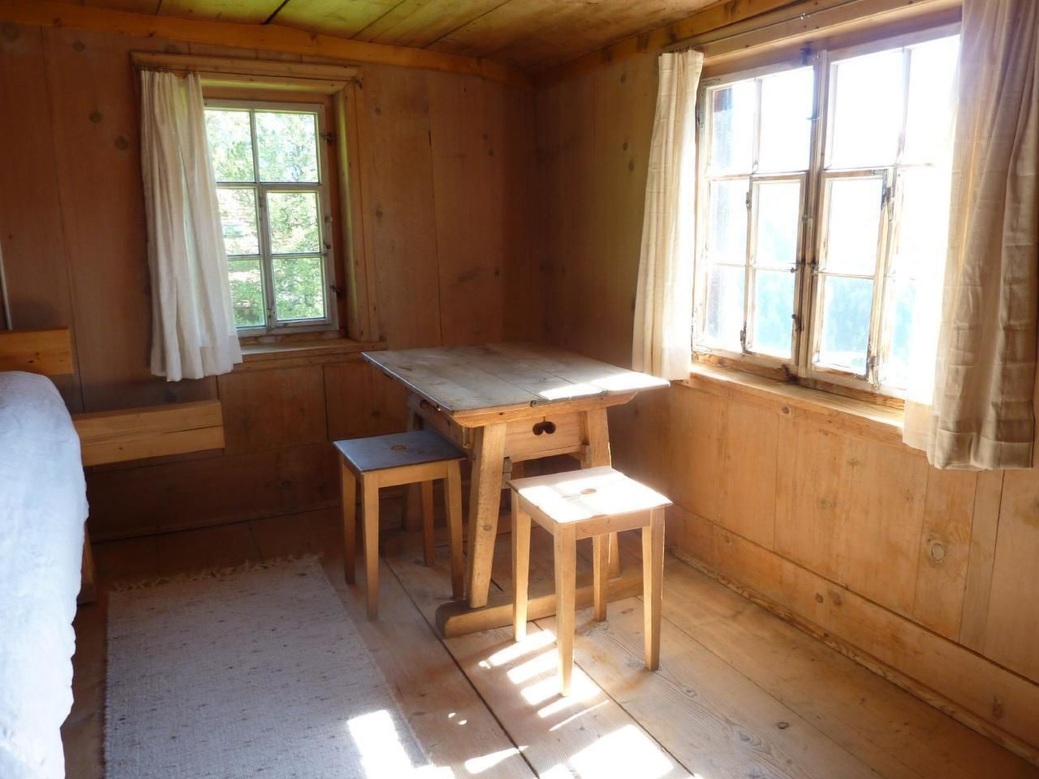 Möchten Sie wohnen wie anno dazumal? Wir vermieten ein historisches Bauernhaus aus dem 16. Jahrhundert an sonniger, ruhiger Lage mit herrlichem Ausblick über's Prättigau. Das Haus wurde früher als Maiensäss benutzt, es ist teilrenoviert und vieles ist noch im ursprünglichen Zustand. In der heimeligen Stube können Sie sich nach einem Skitag oder einer langen Wanderung am grünen Kachelofen auf dem Ofenbänkli aufwärmen. (Man kann auch mit Elektroöfen heizen). Nebenan befindet sich noch eine Nebenkammer, in die man sich zurückziehen kann. Auch die Treppe nach oben und der obere Gang sind noch besonders urchig. Das grosse Schlafzimmer strahlt einen besonderen Charme aus, man fühlt sich wie in eine andere Zeit zurückversetzt. Das Spezielle am Gebäude ist, dass es um einen Felsen herum gebaut wurde, welcher im Eingangsbereich, in der Küche, im Bad und an der Aussenmauer sichtbar ist. Im Untergeschoss befindet sich ein geräumiger Keller. Im Aussenbereich lädt das gedeckte Läubli zum Verweilen ein. Ausserdem steht Ihnen eine grosszügige Rasenfläche zur Verfügung. Zu der alten Gonda gehört noch ein Stall, der von Schafen, Katzen und Kaninchen bewohnt wird. Schwimmbad, Skilift, Volgladen sind innerhalb von 15 Gehminuten erreichbar. Sportmöglichkeiten in der Umgebung: Bergsteigen, Eislaufen, Klettern, Mountainbiking, Paragliding, Radtouren, Ski (alpin), Ski (Langlauf) Basisinformationen - Erlaubte Haustiere: keins - Grundstücksfläche: 175 m² - letzte umfassende Renovierung: 2005 - freistehend - Nichtraucherunterkunft - Schlafzimmeranzahl: 3 - Badezimmeranzahl: 1 Top Merkmale - Klimaanlage: keine - Heizung: überall - Balkon - Garten: zur alleinigen Nutzung - komplett eingefriedet (mit Mauer, Zaun oder Hecke) - Private PKW-Stellplätze insgesamt für diese Unterkunft: 1 - ㄴ davon private Außenstellplätze: 1 Schlafen im Wohnbereich - Schlafzimmer abdunkelbar im Wohnbereich - Schlafzimmer abdunkelbar Schlafzimmer 1 - Doppelbett (größer als 1,80 m Breite) - Kinder-/Babybett - Kinder-/Babybett - Schlafzimmer abdunkelbar Schlafzimmer 3 - Einzelbett - Einzelbett - Schlafzimmer abdunkelbar Schlafzimmer 5 - Etagenbett - Schlafzimmer abdunkelbar Badezimmer Badezimmer 1 - Dusche - Waschbecken - Toilette - Tageslicht Kochen/Wohnen - Kaffeemaschine: Kaffeemaschine - Kühl-/Gefrierschrank: Gefrierfach, Kühlschrank - Herd: Elektroherd, Herd - Backofen - Spülmaschine - Größe der Küche: 12 m² - Anzahl Esstische: 1 - Gesamtzahl Sitzplätze: 2 - Anzahl Wohnzimmer: 2 - Ofen Entertainment - Fernseher: TV, Sat.-TV Hauswirtschaft - Waschmaschine: zur gemeinschaftlichen Nutzung im Gebäude - Staubsauger Außenbereich - Outdoormöbel - Grill: Grill Umgebung - Aussicht: Berg, Garten, Wald, Wiese, Tal - Lebensmittelhandel: 300 m - Cafés/Restaurants: 250 m - Fahrrad-Verleih: 1 m - Ski - Skilanglauf: 1,0 km - Berg-/Seilbahn: 300 m Besonderheiten - Bauernhaus - Inmitten der Natur gelegen