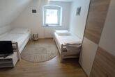 Schlafzimmer 4 im 1. Stock mit 2 Einzelbetten, Kleiderschrank und Sitzgelegenheiten.