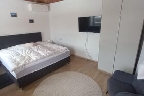 Schlafzimmer 2 im Erdgeschoss mit Boxspringbett 1,80, großer Kleiderschrank