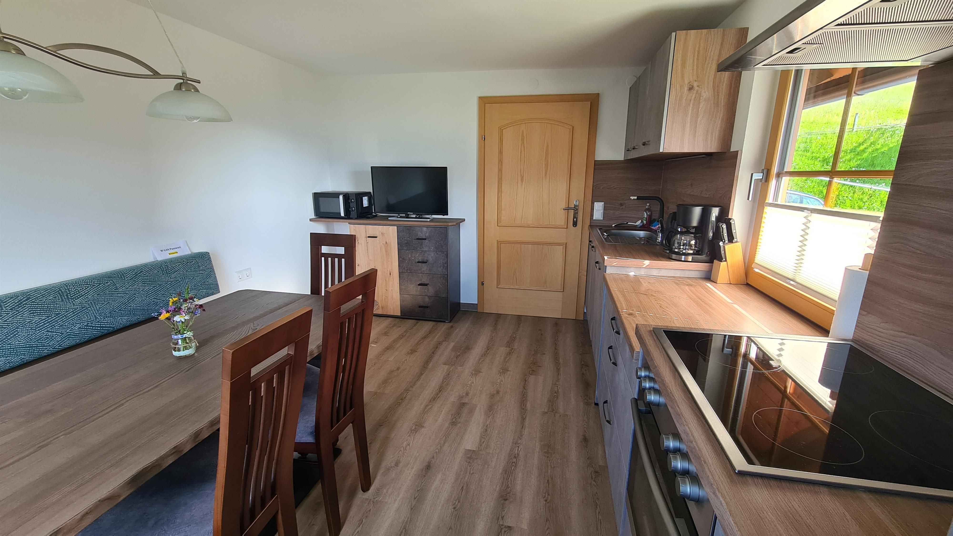Unser Appartement Stoderblick bieter Platz für 2 - 8 Personen und verfügt über 1 - 4 Doppelzimmer jeweils mit eigenem Bad. Die vollausgestattete Küche mit gemütlichem Essbereich und Fernseher steht unseren Appartementgästen für ihren Aufenthalt zur Verfügung. Zimmer, Küche und separates Wohnzimmer verteilen sich auf 2 Stockwerke und stellen keine geschlossene Wohneinheit dar, bieten dadurch aber das behagliche Wohnerlebnis eines Bauernhauses. Vom Appartement genießen Sie einen herrlichen Blick ins Tal und in die umliegende Bergwelt.