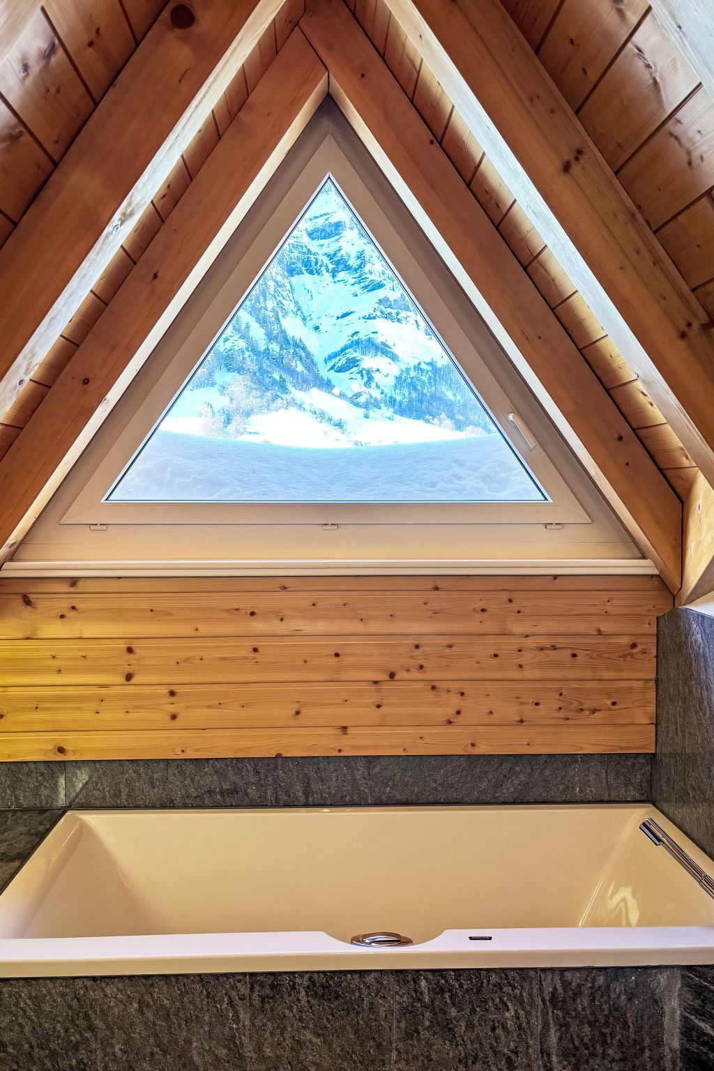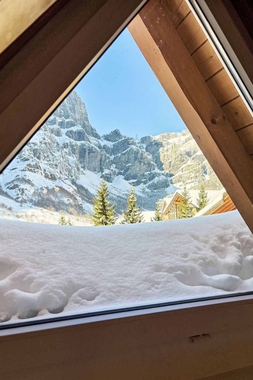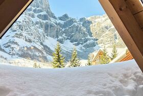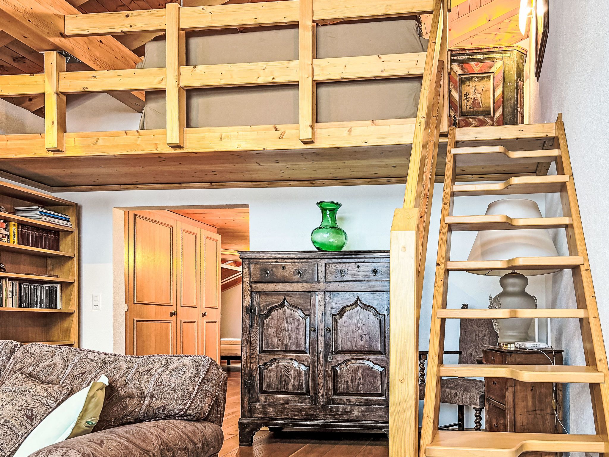 3-Zimmer-Attikawohnung 100 m2 auf 2 Stockwerken im 4. Stock. Komfortabel und geschmackvoll eingerichtet: Wohn-/Esszimmer mit offenem Kamin. Ausgang zum Balkon, Richtung Süden. 1 Zimmer mit Digital-TV und DVD. 1 abgeschrägtes Doppelzimmer mit 1 Doppelbett. Offene Küche (Backofen, Geschirrspüler, 4 Glaskeramikplatten, Mikrowelle, elektrische Kaffeemaschine, Kapseln für die Kaffeemaschine (Nespresso) extra). Dusche/WC, Bad/Dusche/WC. Obergeschoss: abgeschrägte, offene Galerie mit 1 Doppelbett. Sehr schöne Sicht auf die Berge und die Landschaft. Zur Verfügung: Kinderhochstuhl, Babybett (extra). Internet (WLAN, gratis). Garage (extra). Bitte beachten: Nichtraucher-Unterkunft. Zu beachten: Dach ist teilweise sehr abgeschrägt im Obergeschoss.