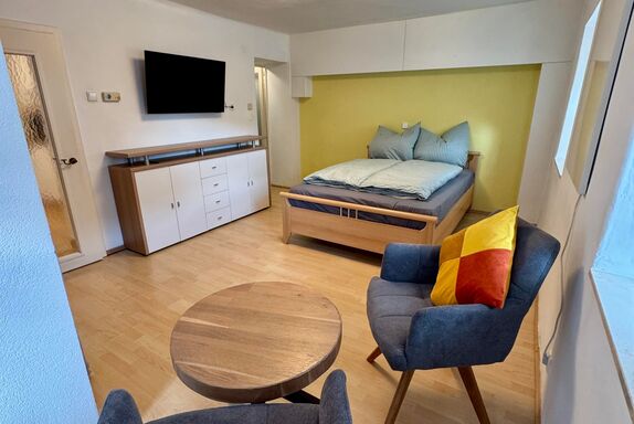 Die liebevoll eingerichtete Wohnung verfügt über einen hellen Wohn- und Schlafbereich, eine gut ausgestattete Küche sowie ein Badezimmer. Die kompakte, durchdachte Raumaufteilung sorgt für Komfort und eine angenehme Wohnatmosphäre.