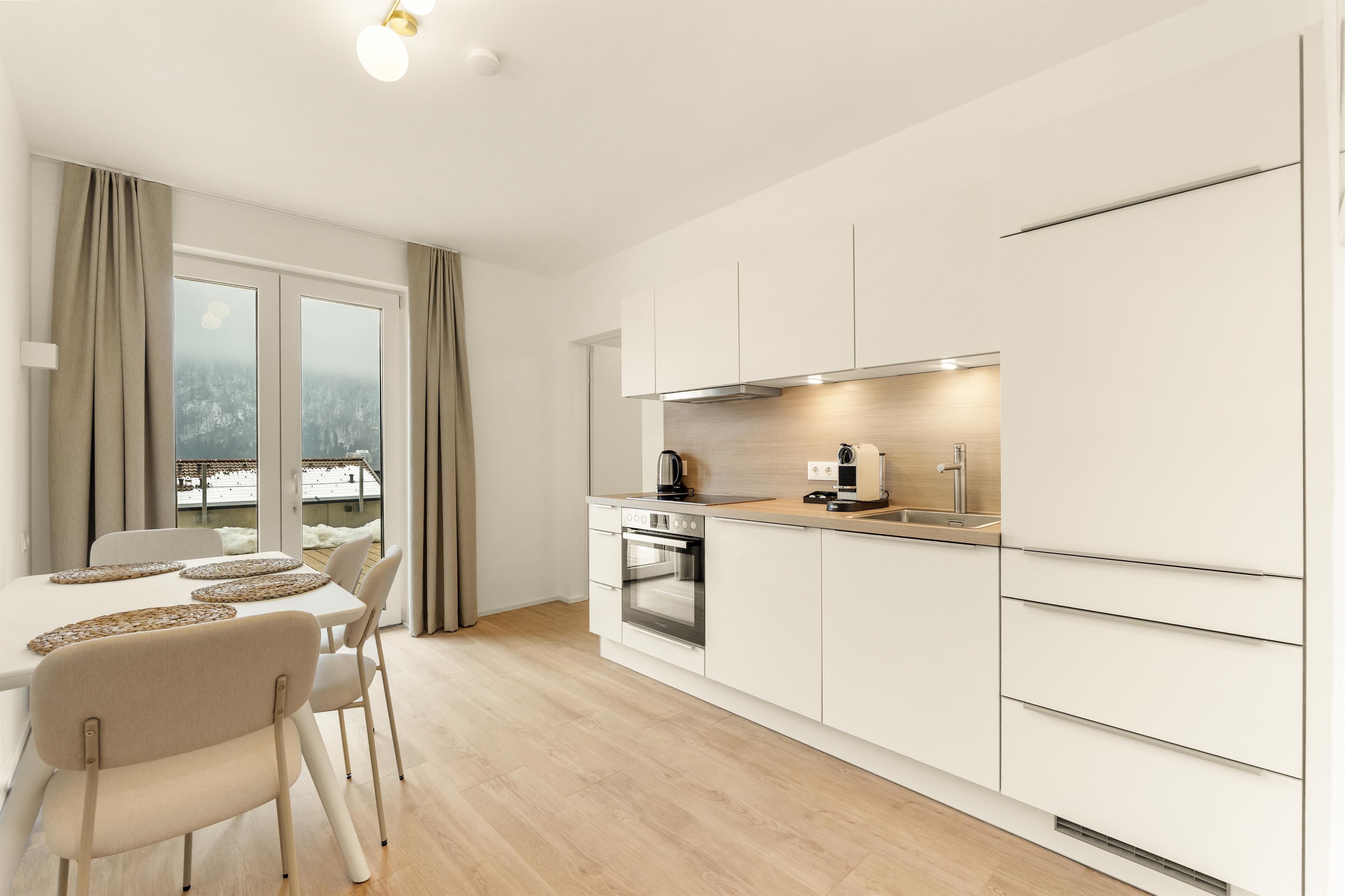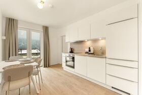 Unsere Apartments überzeugen mit hellen Wohnbereichen, voll ausgestatteten Küchen sowie privaten Balkonen oder Terrassen mit einem traumhaften Blick auf den malerischen Ossiacher See und die umliegende Berglandschaft.