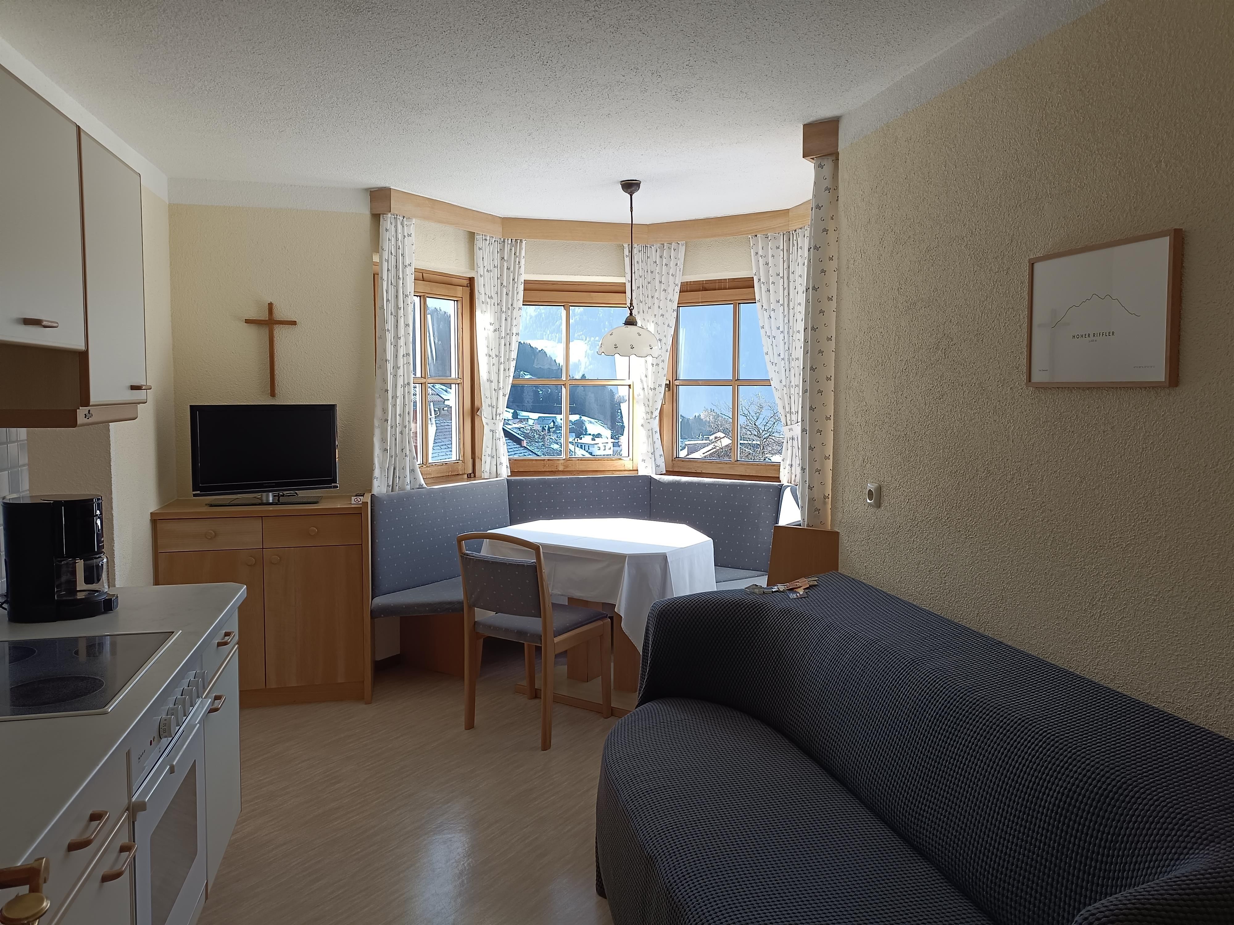 Unser liebevoll eingerichtetes und lichtdurchflutetes Appartment Rifflerblick für 1 - 4 Personen bietet Ihnen sämtliche Annehmlichkeiten, die Sie für einen erholsamen Urlaub brauchen.