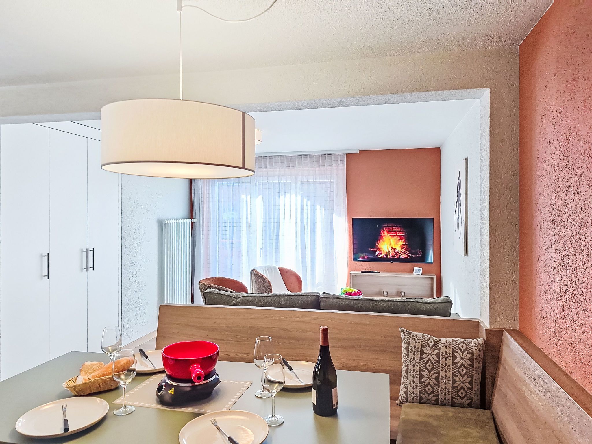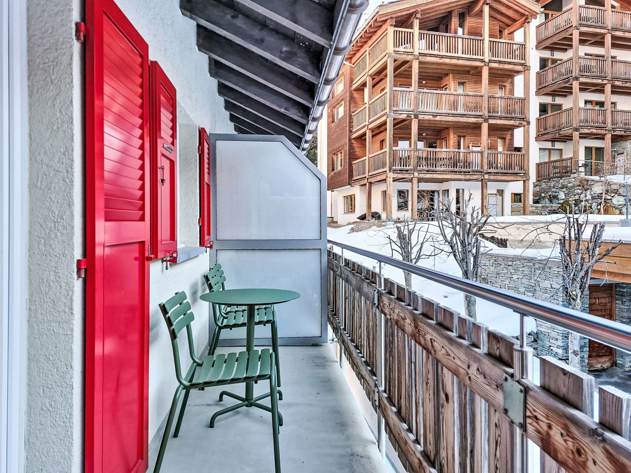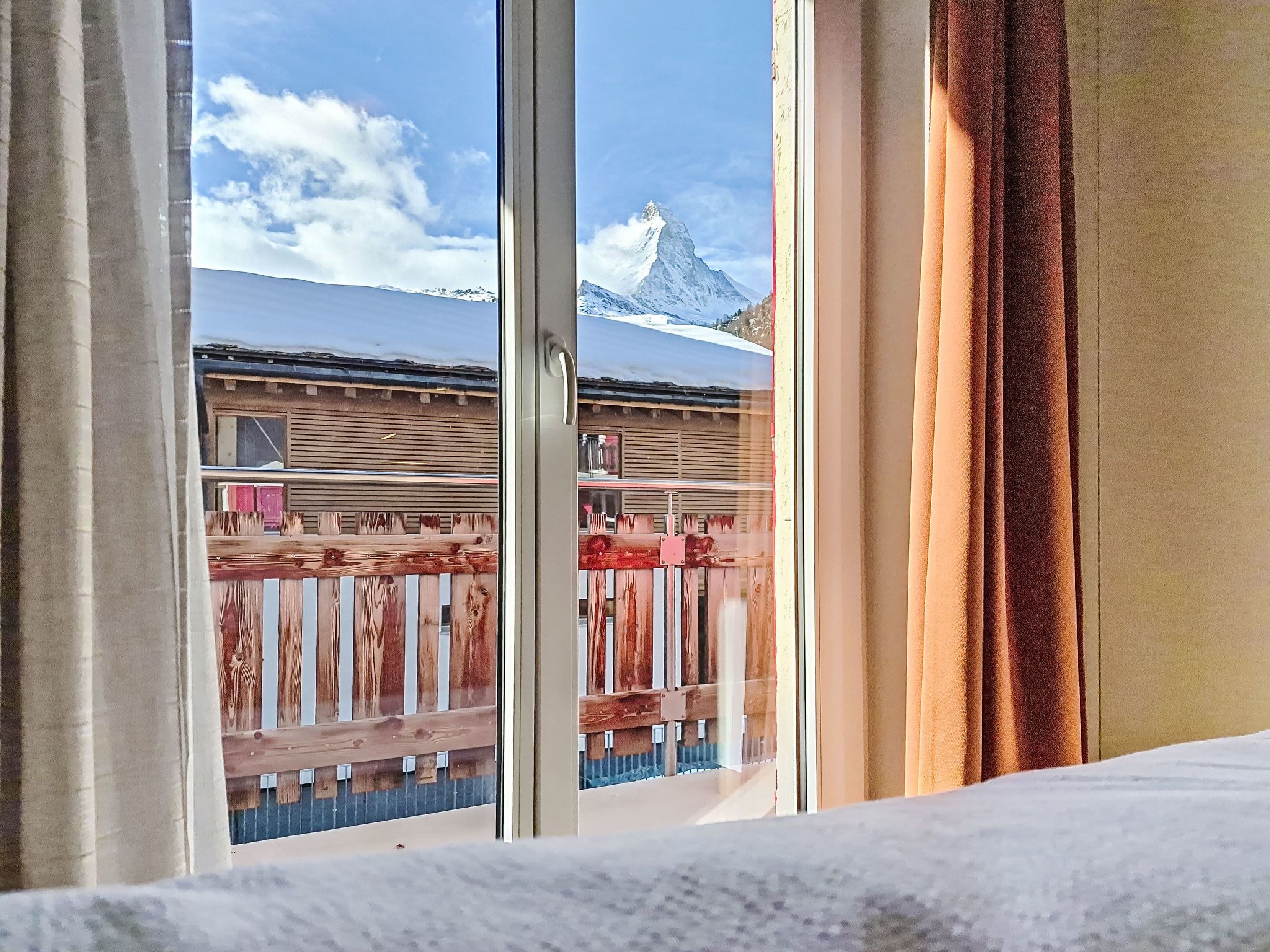 Juliana 829, 3-Zimmer-Wohnung 45 m2 im 3. Stock. Vollständig renoviert im Jahre 2025, schön und stilvoll eingerichtet: Wohn-/Esszimmer mit Esstisch und Digital-TV. Ausgang zum Balkon. 1 Doppelzimmer mit 1 Doppelbett (180 cm, Länge 200 cm). Ausgang zum Balkon. 1 Zimmer mit 1 Bett (140 cm, Länge 200 cm), 1 x 1 Etagenbetten (90 cm, Länge 200 cm). Ausgang zum Balkon. Offene Küche (Backofen, Geschirrspüler, 4 Glaskeramikplatten, Toaster, Wasserkocher, Tiefkühler, elektrische Kaffeemaschine). Dusche/WC. Heizung. 2 Balkone. Balkonmöbel. Sehr schöne Sicht auf die Berge und das Matterhorn. Zur Verfügung: Haartrockner. Internet (WLAN, gratis). Bitte beachten: Nichtraucher-Unterkunft.