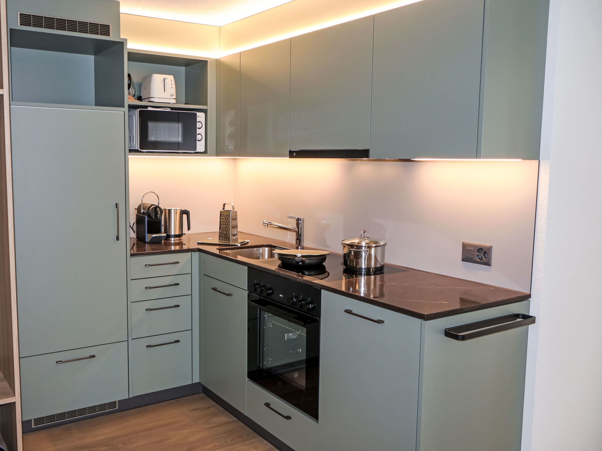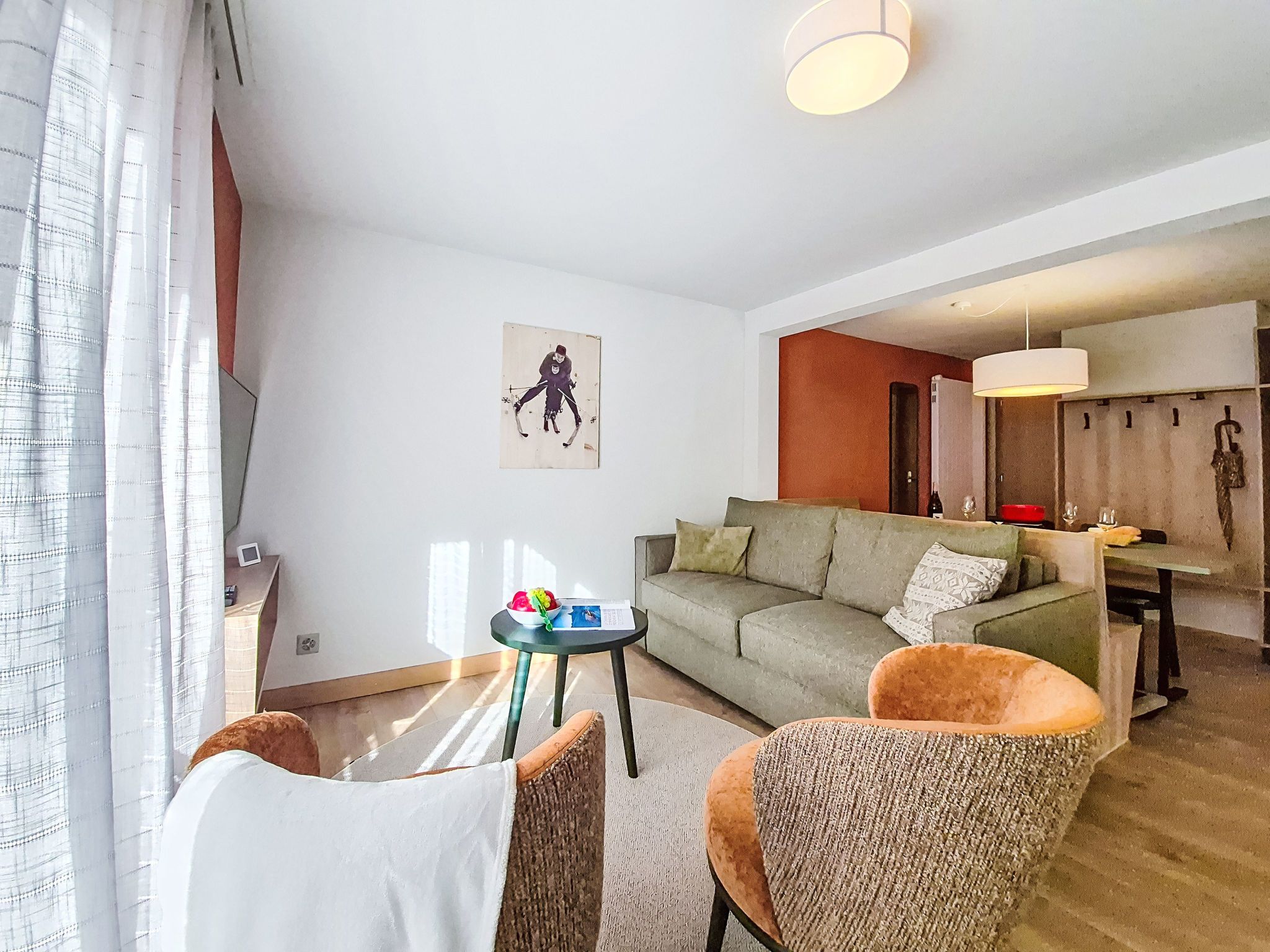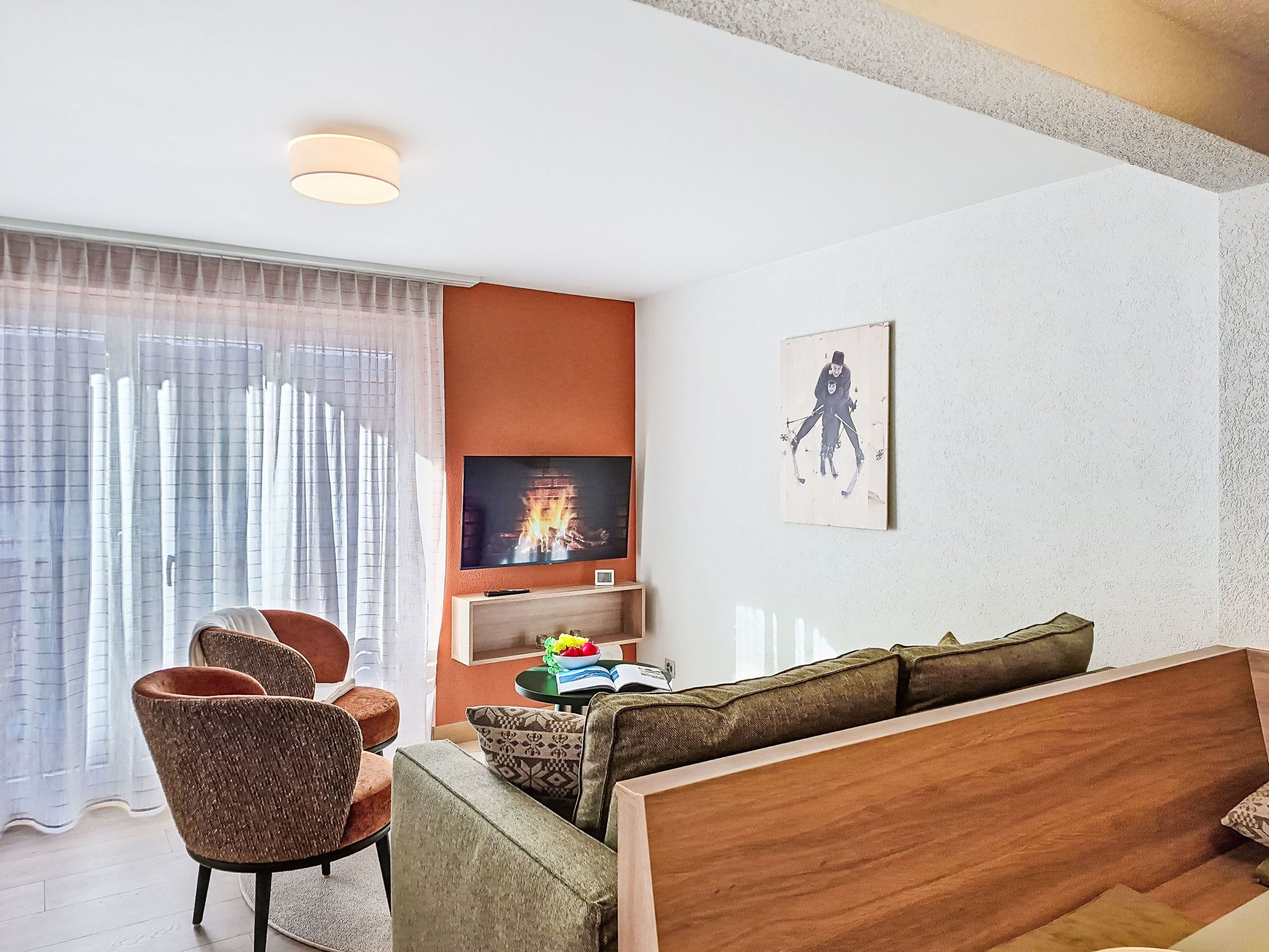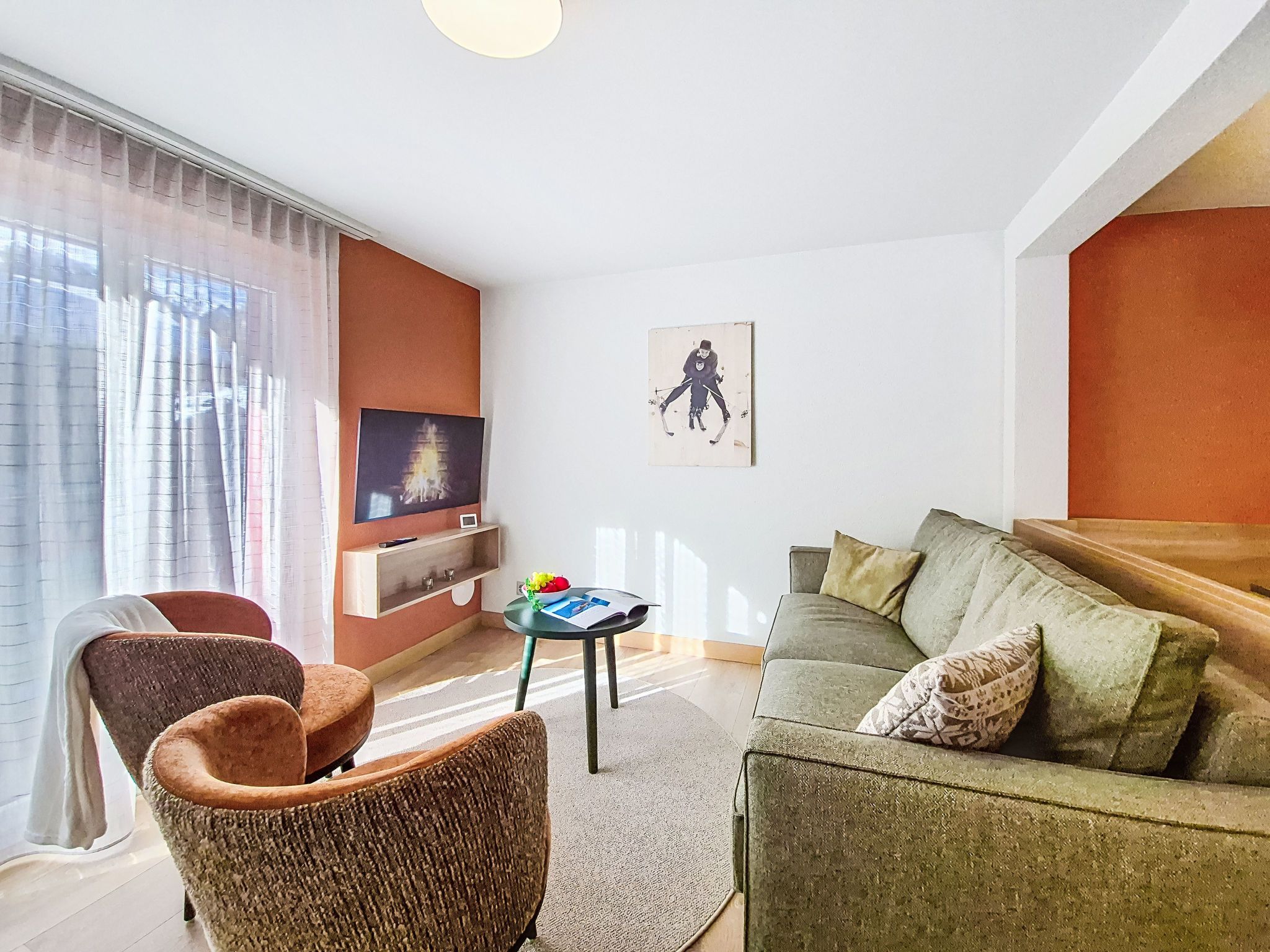 Juliana 829, 3-Zimmer-Wohnung 45 m2 im 3. Stock. Vollständig renoviert im Jahre 2025, schön und stilvoll eingerichtet: Wohn-/Esszimmer mit Esstisch und Digital-TV. Ausgang zum Balkon. 1 Doppelzimmer mit 1 Doppelbett (180 cm, Länge 200 cm). Ausgang zum Balkon. 1 Zimmer mit 1 Bett (140 cm, Länge 200 cm), 1 x 1 Etagenbetten (90 cm, Länge 200 cm). Ausgang zum Balkon. Offene Küche (Backofen, Geschirrspüler, 4 Glaskeramikplatten, Toaster, Wasserkocher, Tiefkühler, elektrische Kaffeemaschine). Dusche/WC. Heizung. 2 Balkone. Balkonmöbel. Sehr schöne Sicht auf die Berge und das Matterhorn. Zur Verfügung: Haartrockner. Internet (WLAN, gratis). Bitte beachten: Nichtraucher-Unterkunft.