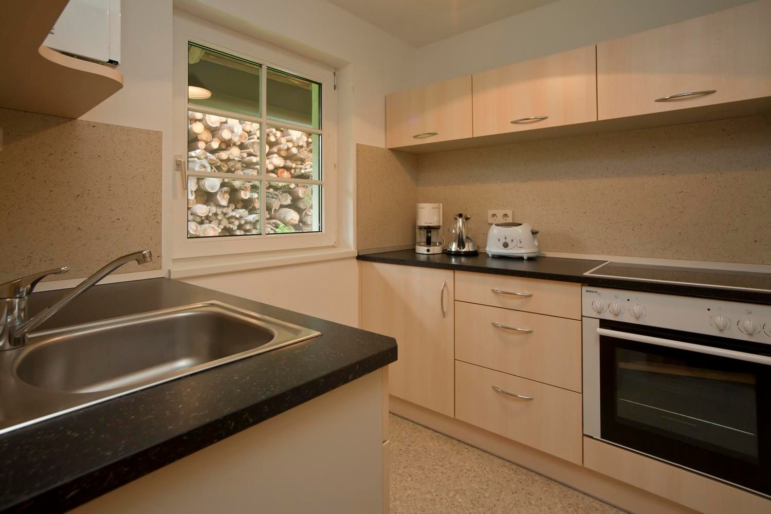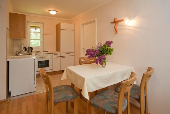 Vorraum, Dusche, WC, Küche mit Ess-Wohnraum und zwei getrennte Zweibettzimmer.