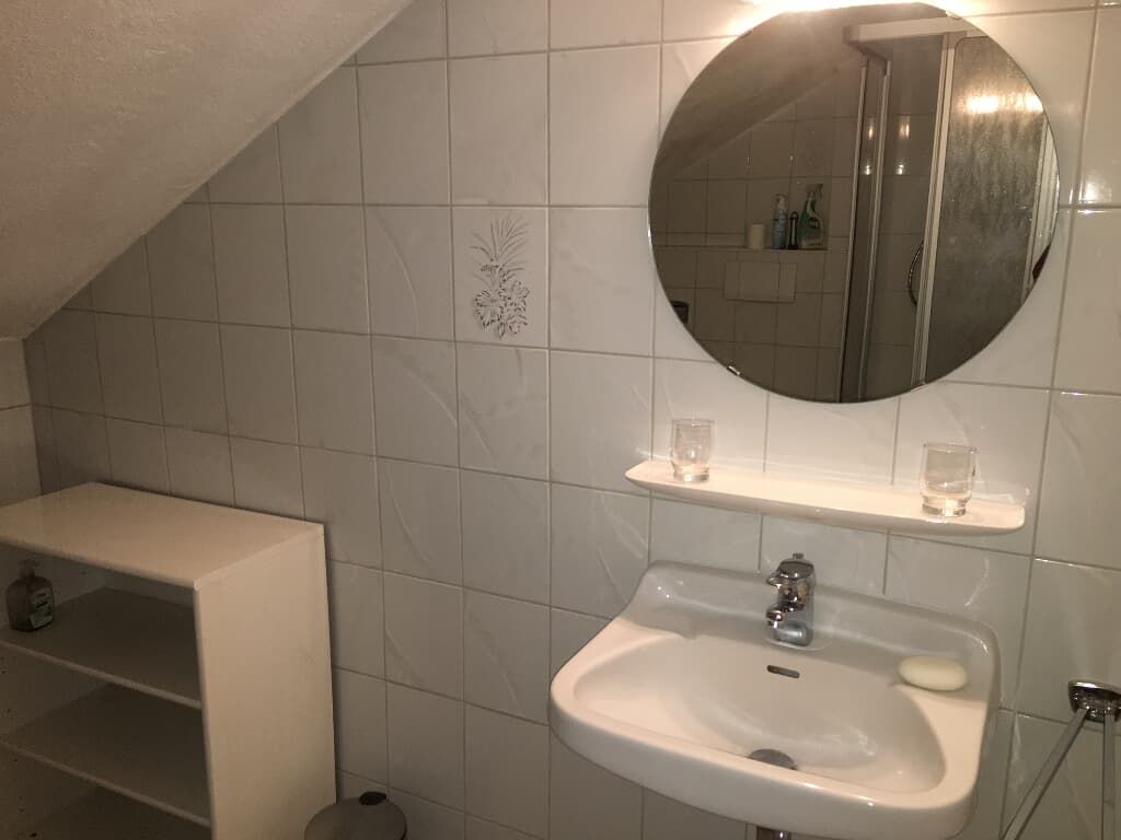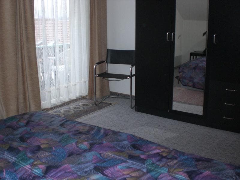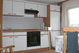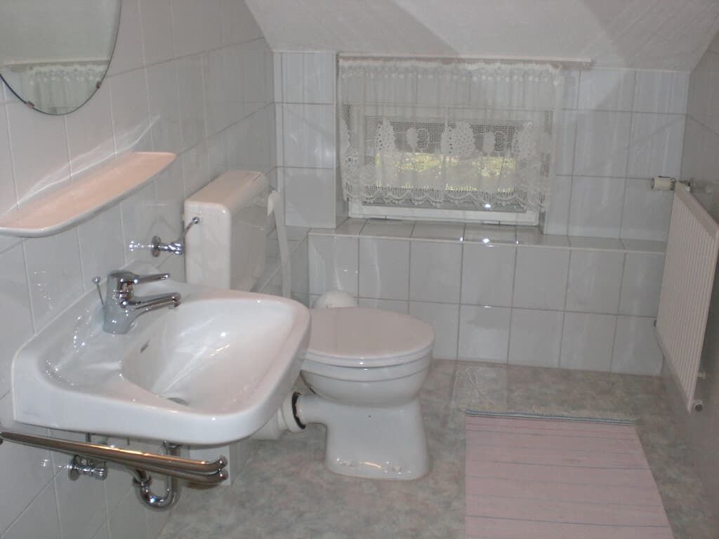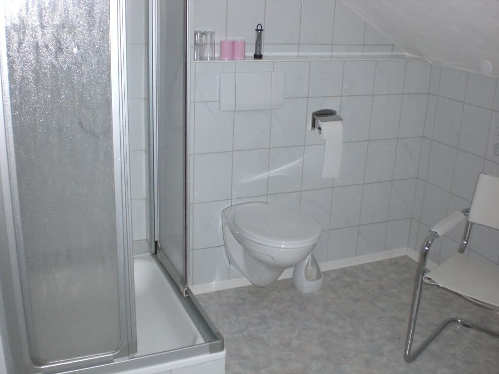 Komfortable Ferienwohnung für 2 - 4 Personen (70 qm) im Dachgeschoss. Die Ferienwohnung ist ausgestattet mit zwei Schlafzimmern (Doppelbett), einem Wohnraum mit Küchenzeile (inkl. E-Herd, Kühlschrank, Kaffeemaschine, Wasserkocher, ausreichend Geschirr) und separatem Essplatz. Das Badezimmer ist mit Dusche und WC ausgestattet und verfügt über ein Fenster. In der Wohnung befindet sich ein zweites separates WC, ebenfalls mit Fenster.