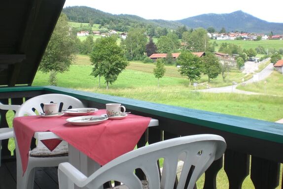 Von der Wohnküche und einem Schlafzimmer haben Sie Zugang zum Balkon mit Blick zum Osser, zum Arber und den Ort Lam. Vom zweiten Schlafzimmer blicken Sie zum Hohen Bogen.