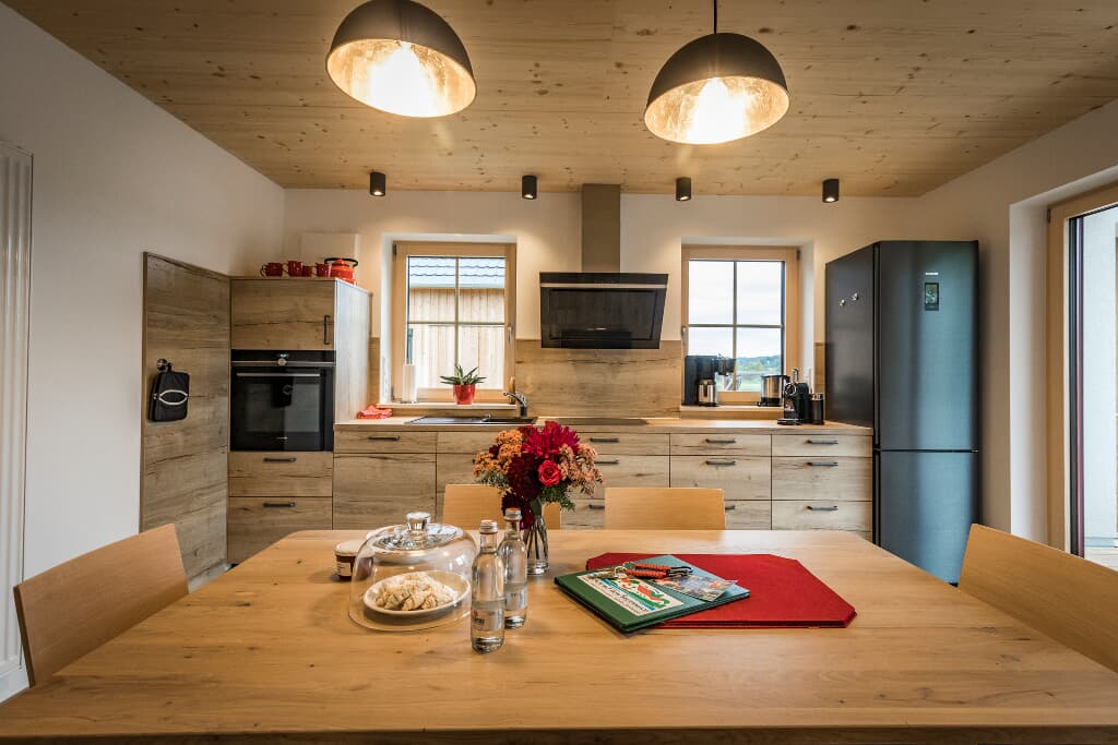 Selbstverständlich ist die Küchenzeile mit hochwertigen Geräten und Utensilien ausgestattet: Kühlschrank, Backofen, Ceranfeld, Geschirrspülmaschine, Wasserkocher, Toaster, Kaffeemaschine und sämtliches Kochgeschirr sind vorhanden.