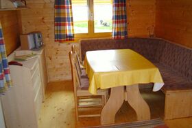 Die Ausstattung von Haus 23 läßt keine Wünsche offen. Es erwartet Sie ein Wohn-Esszimmer mit gemütlicher Sitzgruppe, Sat-TV (LCD), Blu-ray-Player, Stereoanlage mit CD und WLAN (kostenlos). In der Essecke lädt ein grosser Tisch mit Eckbank und Stühlen zur Brotzeit oder geselligem Beisammensein ein. Zur Möblierung gehört ebenfalls ein Sideboard, in dem Sie auch mitgebrachte Dinge verstauen können.