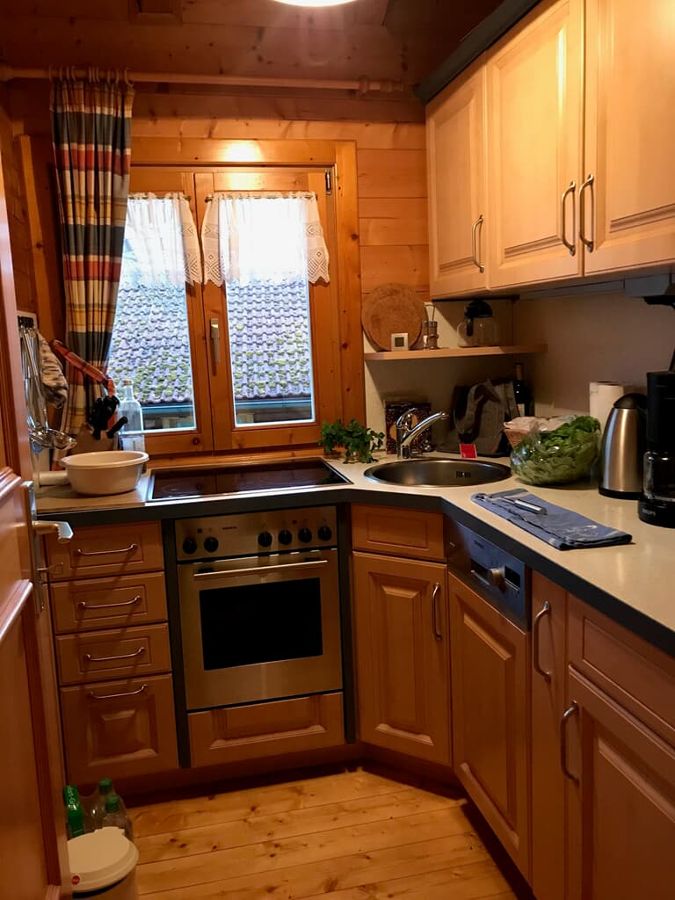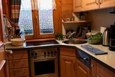 Die Möbel im Haus sind massiv. Zwischen Sitzgruppe und dem Durchgang zu den Schlafzimmern befindet sich ein Raumteiler, der auch als Schrank für Geschirr genutzt wird. Die kleine Küche ist komplett ausgestattet mit 4-Platten-Herd (Ceranfeld) und Backofen, Kühlschrank mit ***-Fach, Geschirrspüler, Mikrowelle, Kaffeemaschine und div. Klein-Elektrogeräten. Geschirr und Bestecke sind für 10 Personen vorhanden und auch Töpfe und Pfannen mit dem nötigen Zubehör werden Sie in unterschiedlichen Größen vorfinden.