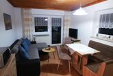 Ferienwohnung W 1 ist im Erdgeschoss, hat 55 qm und besteht aus einem Wohnraum mit Kochzeile, 2 Schlafzimmern mit je einem Doppelbett, Bad, DU/WC und Balkon.