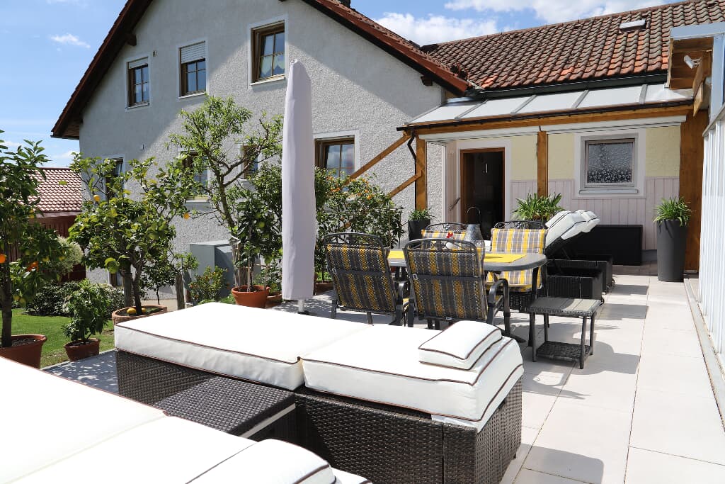 Das Einzimmer-Apartment für 2 Personen im Obergeschoß, kann auch zur Erweiterung der FeWo`s genutzt werden. Nehmen Sie hierzu Kontakt mit uns auf (XXXXXX oder Mail an ). In unserem gepflegten Garten finden Sie Erholung und Entspannung. Pergola und Terrasse mit Grill. Keine Haustiere.
