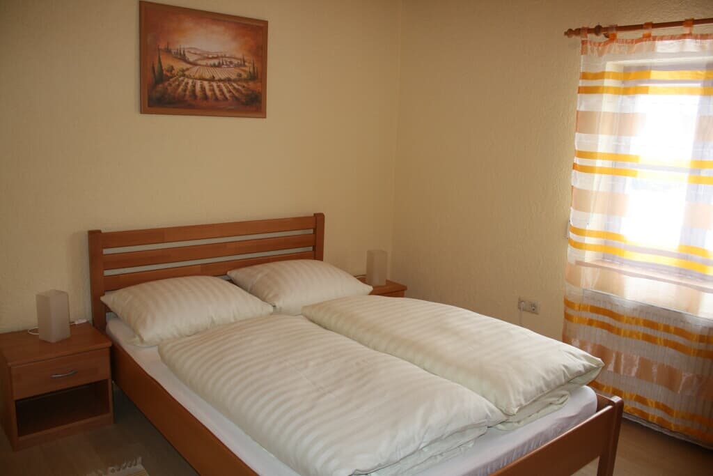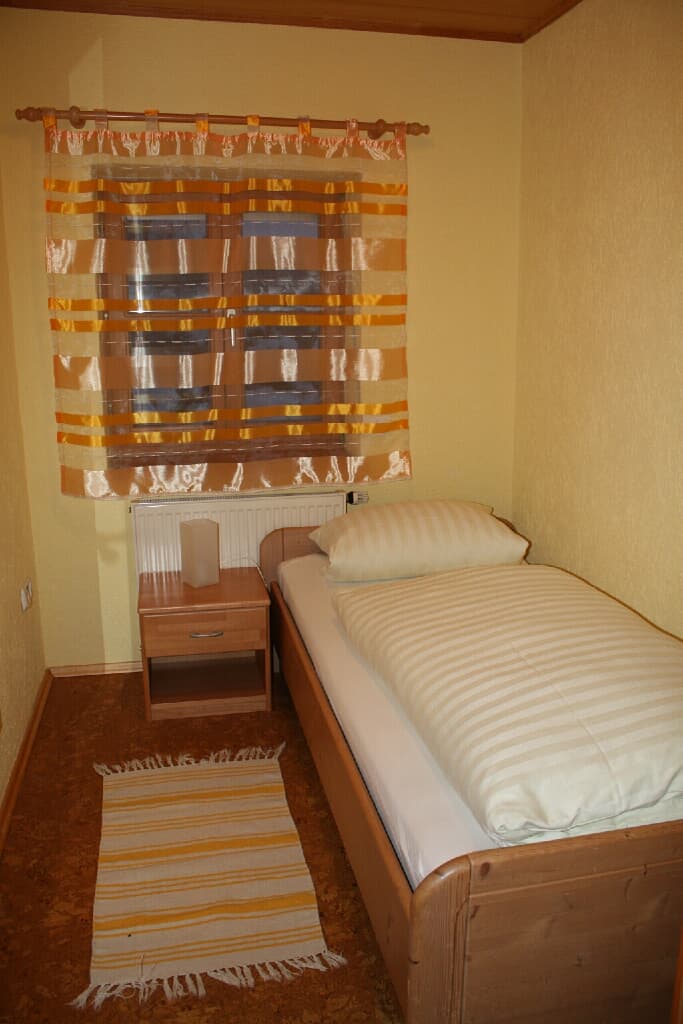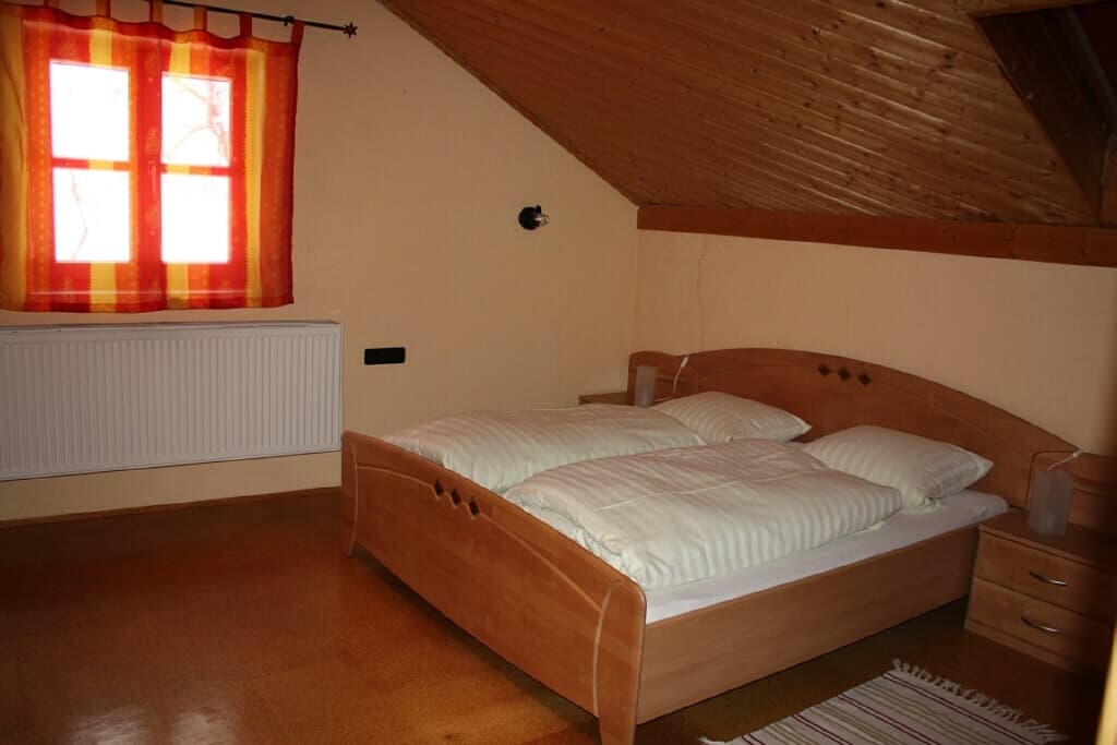• 3 Schlafzimmer (1 Schlafraum mit 1 Doppelbett im EG, 1 Schlafraum mit 1 großen Doppelbett und Schlafcouch im OG, 1 Schlafraum mit 1 Einzelbett im EG; Fußböden: Laminat und Kork, für Zustell - oder Kinderbett ist auch noch Platz.)