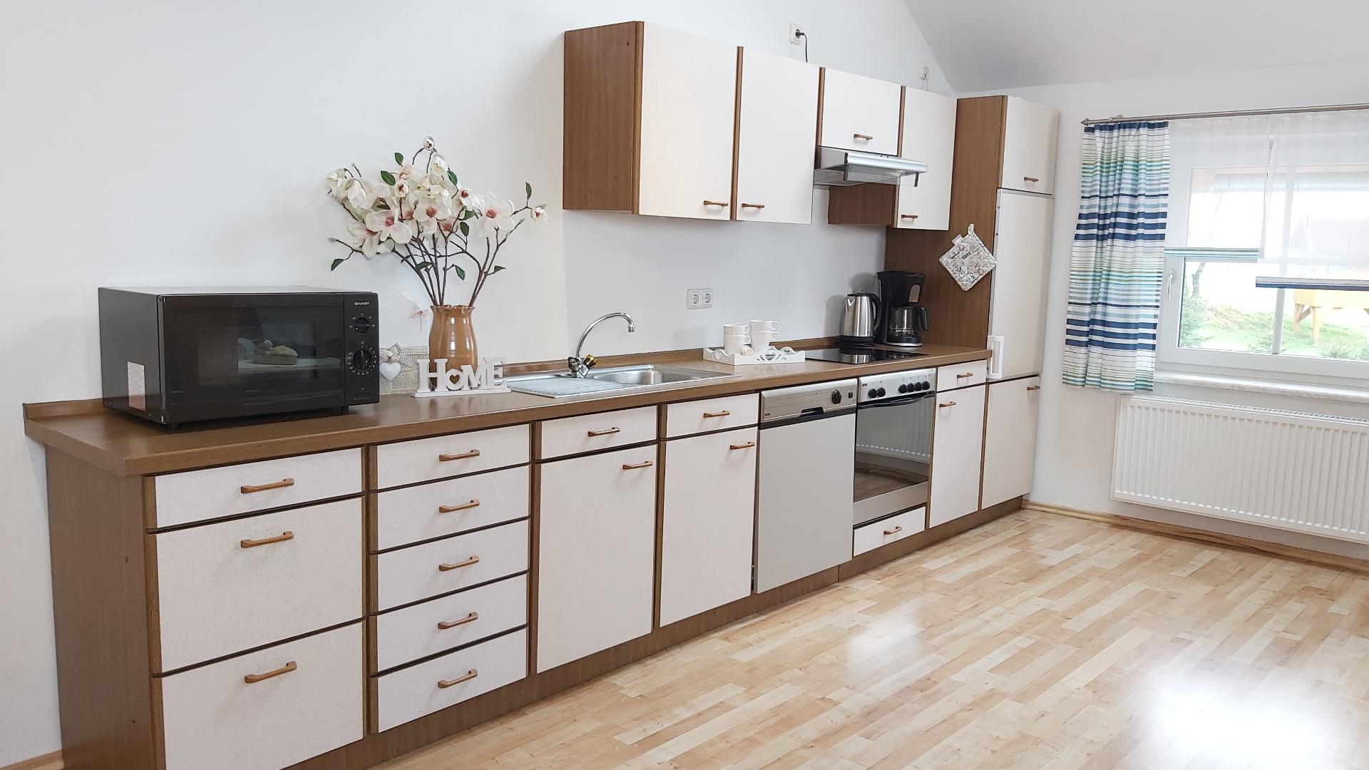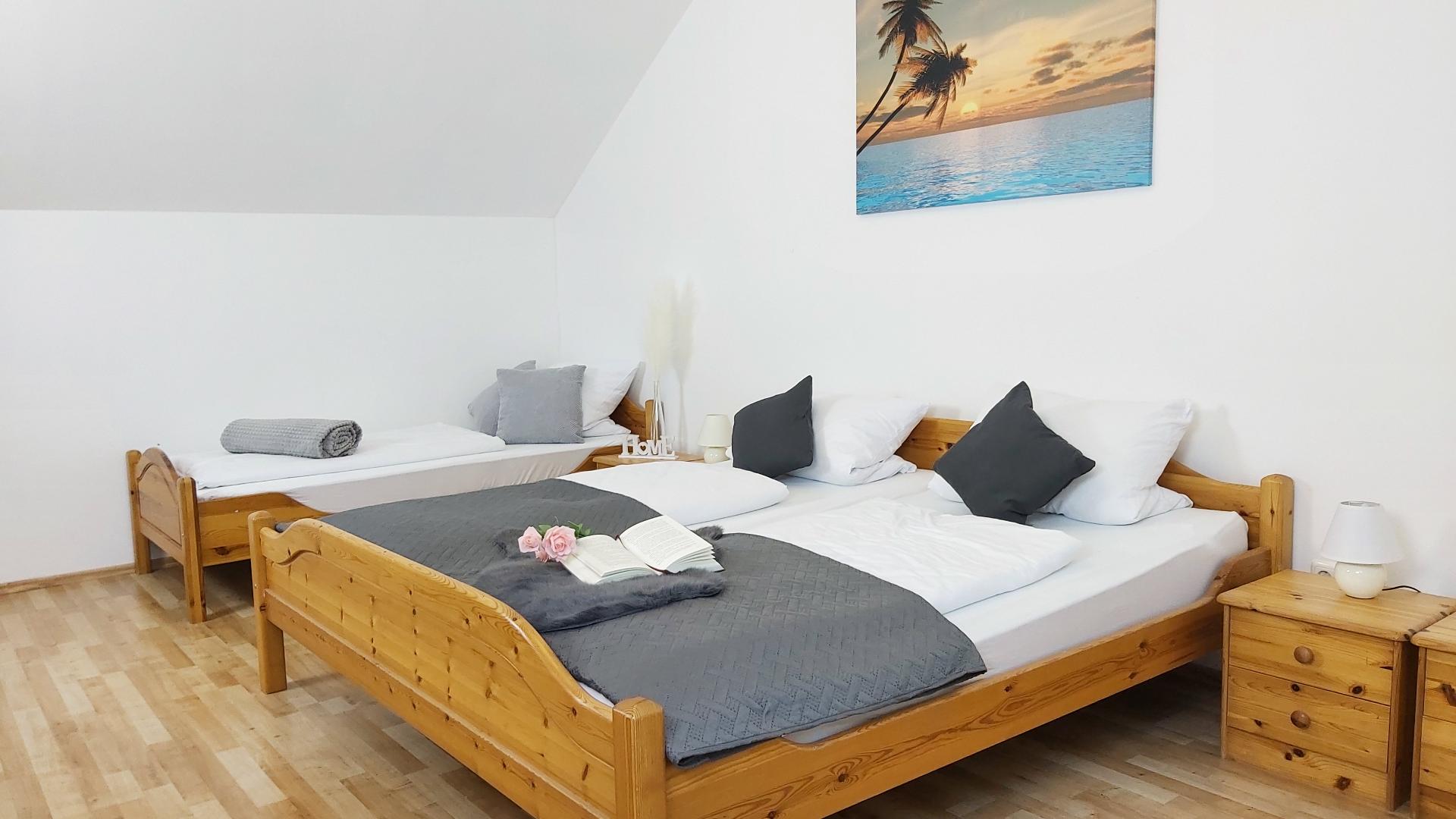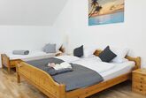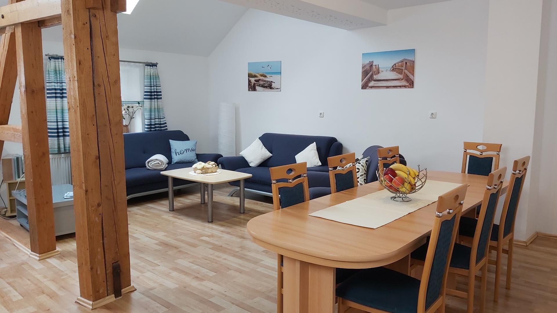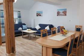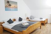 Erholen Sie sich in unserer großen 120qm Ferienwohnung mit Platz für bis zu 8 Personen. Die Wohnung besteht aus einem großen und geräumigen Wohn- Essraum mit Küche, 3 Schlafzimmern (1x Doppelbett und 2 Einzelbetten, 1x Doppelbett, 1x zwei Einzelbetten), Bad mit Dusche und Badewanne und WC, 1 separates WC.