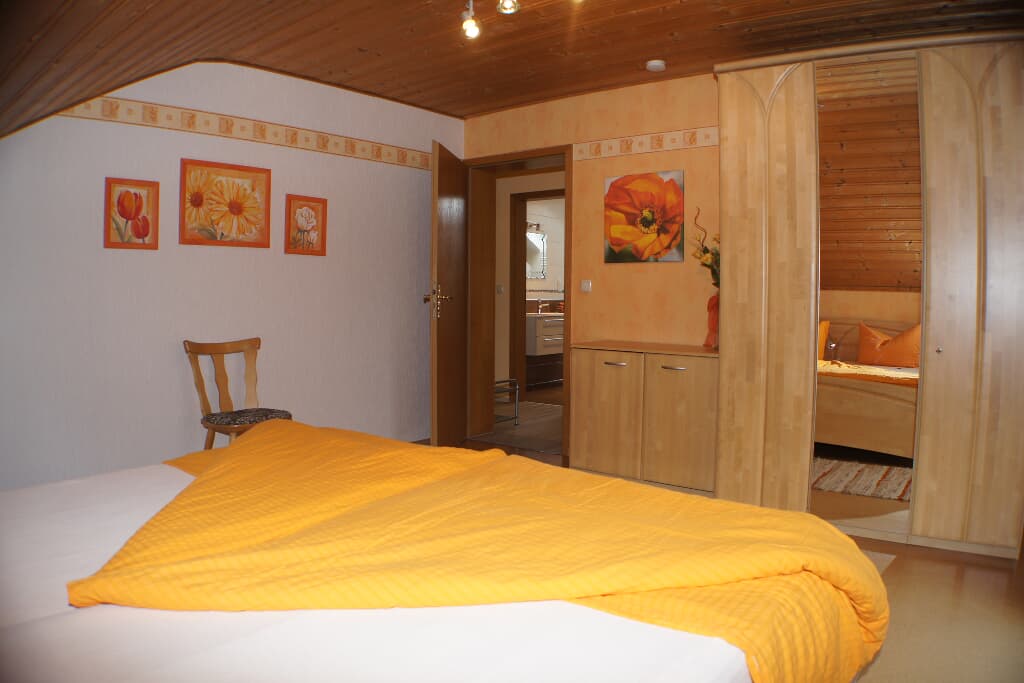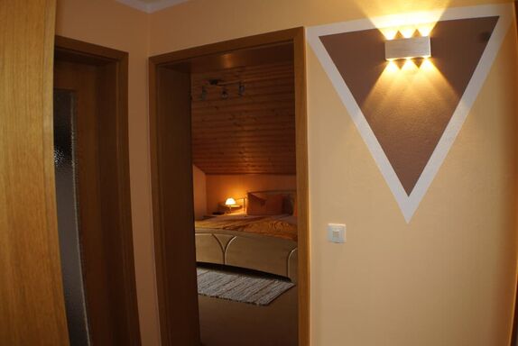 Ferienwohnung - mit 65 qm im Dachgeschoss des Bauernhauses, mit geräumigem Balkon, 2 getrennten Schlafräumen, sowie DU/WC und Wohnküche.
