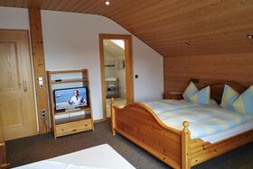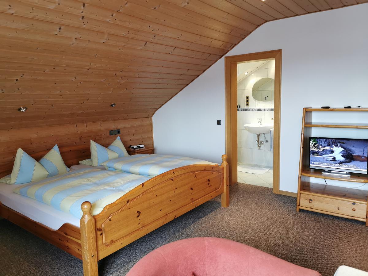 Alle Gästezimmer mit Du/WC oder Bad/WC, Balkon/Terrasse, Sat-TV. Rustikaler Frühstücks- und Aufenthaltsraum. Gästekühlschrank und Geschirr für kleinen Imbiß stehen zur Verfügung. Frühstücksbüffet.