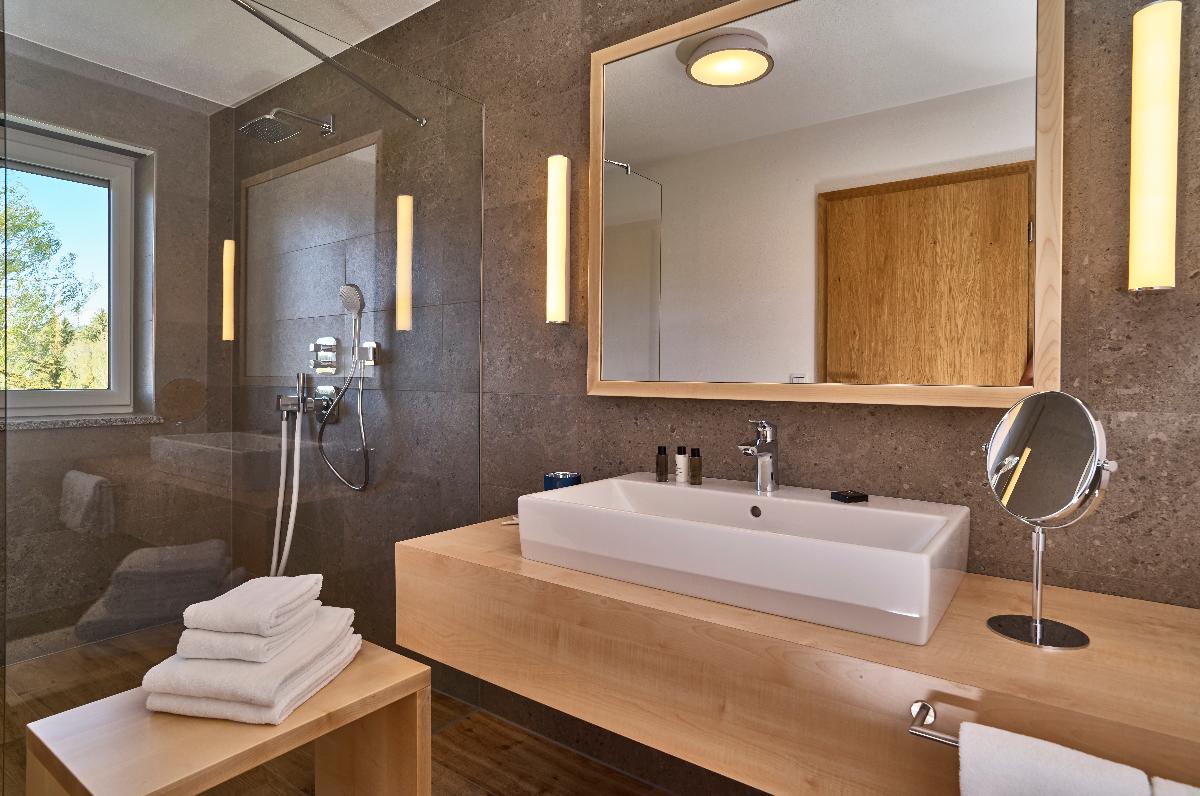 Nach einem aktiven Outdoor-Tag entspannen sie in der Suite in der Privat-Sauna oder im Studio in einer Infrarotwärmekabine. Das große Bad mit einer besonderen Kneipp-Dusche lässt keine Wünsche offen.