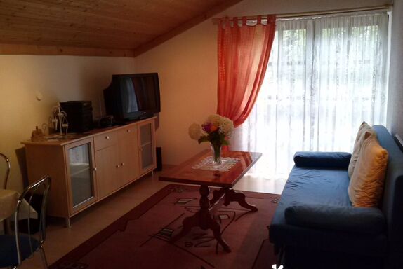 schöne Ferienwohnung, gemütlich eingerichtet für 2 Personen. (zus.Aufbettung möglich) Wohnzimmer mit abgetrennter Kochnische mit Radio-und SAT-TV und Balkon, Schlafzimmer mit abgetrennter Dusche und WC. Bettwäsche und Handtücher werden gestellt. Stellplatz vorhanden.