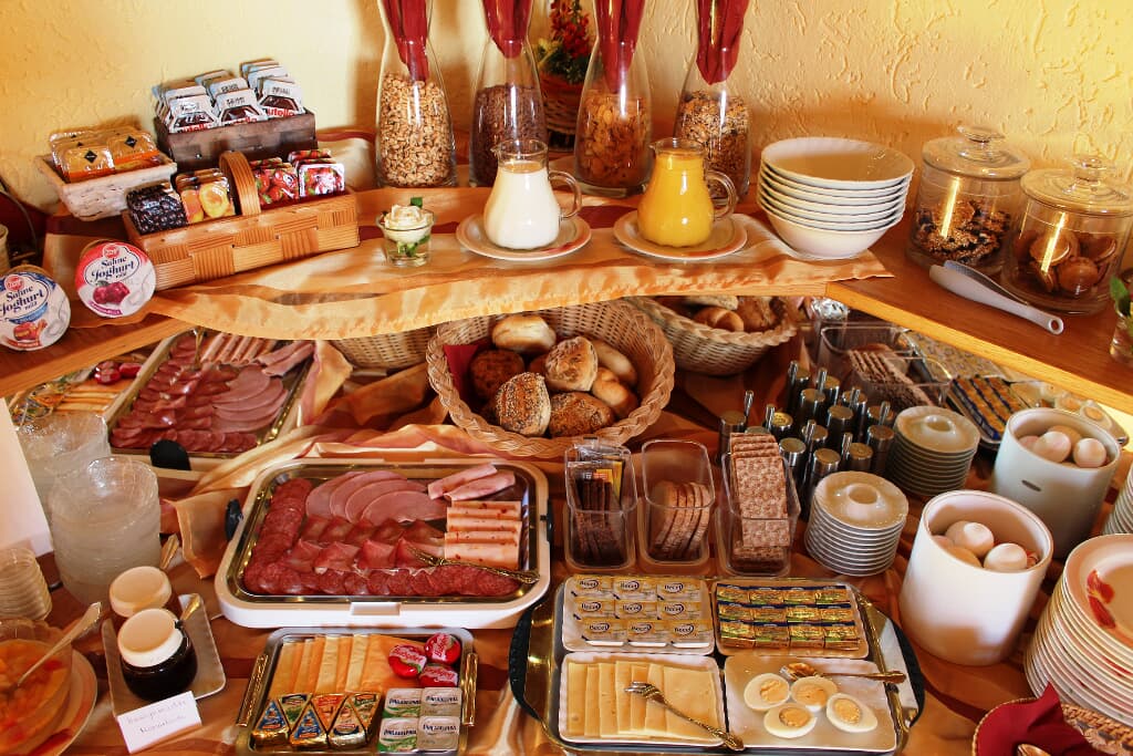 Damit Sie gut in den Tag starten, können Sie sich an unserem reichhaltigen Frühstücksbuffet stärken. Zudem bieten wir Ihnen einen Kaffee und Snackautomaten, sowie eine Terrasse mit Grillmöglichkeit. Motorräder und Fahrräder können Sie gerne kostenlos in einer abschließbaren Garage unterstellen.