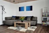Unsere Wohnung bietet auf 2 Etagen hohen Komfort: 2 Schlafzimmer, Gäste-WC, großes Wohnzimmer, vollausgestattete Küche (Mikrowelle, Geschirrspüler...), Bad mit integrierter Sauna usw. Für die Kleinen: diverses Spielzeug, Kinderspielplatz, Riesentrampolin, Spielzimmer (Kicker, Dart usw.)...