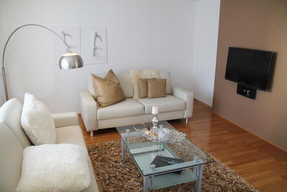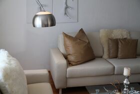 Auf mehr als 75 qm stehen in Haus Sonnenschein, Wohnung 2, zwei Schlafzimmer mit einem Boxspringbett (1,80 Meter beziehungsweise 1,60 Meter Breite), ein Wohnzimmer mit Sat-TV und Hi-Fi-Set, ein Badezimmer mit Badewanne und WC sowie eine Wohnküche mit Küchenzeile/Spülmaschine zur Verfügung. Zur Wohnung gehört außerdem ein Balkon.