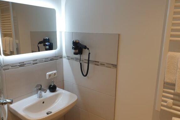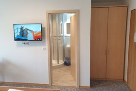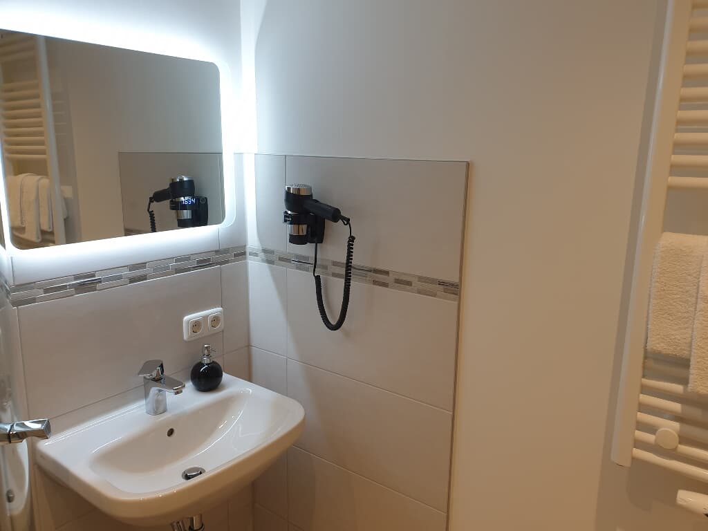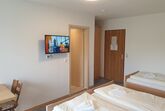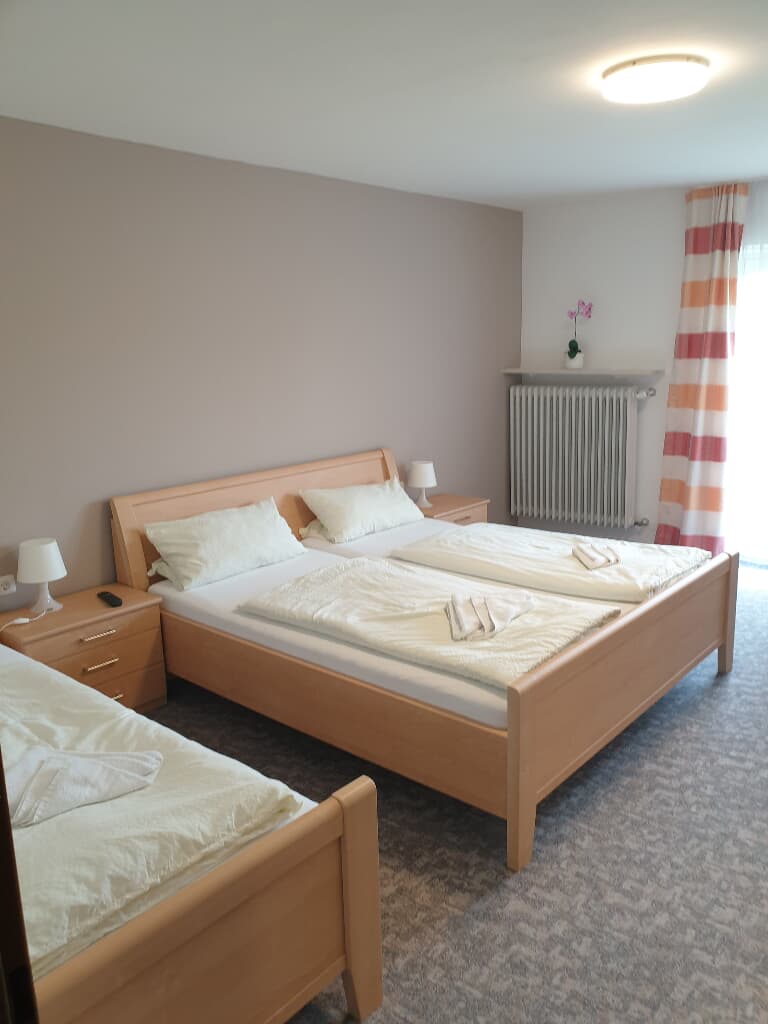 Dreibettzimmer mit größerem Bad, einem Doppelbett und einem Einzelbett inklusive Frühstück