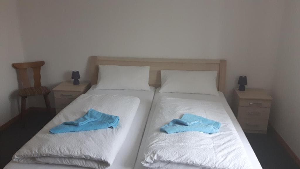 Doppelzimmer ohne Balkon inklusive Frühstück in Zimmer 1 ist ein Bett mit 2,10 m Länge