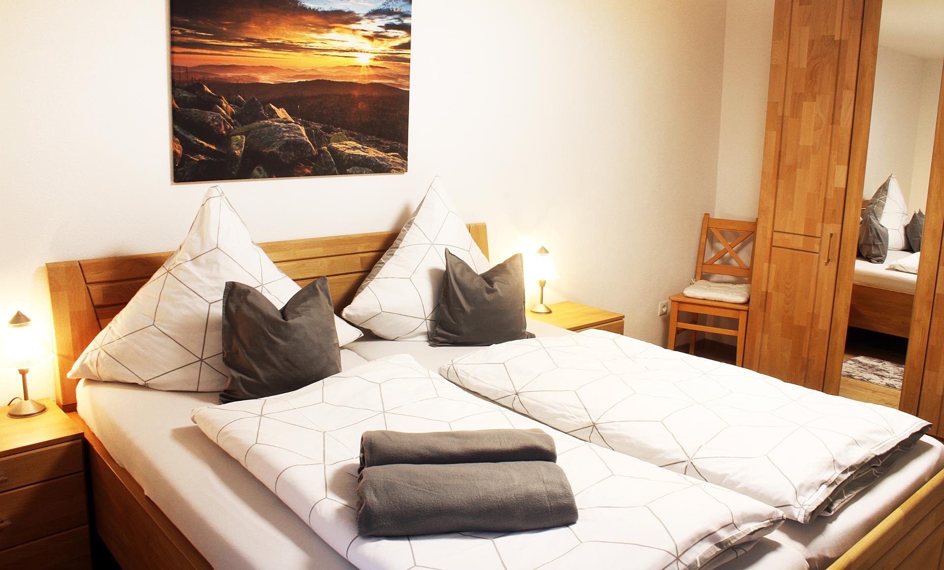 Die Zweizimmer-Ferienwohnung Lusen befindet sich im Erdgeschoss und ist bestens geeignet für bis zu 3 Personen. Im Schlafzimmer gibt es ein Doppelbett mit verstellbaren Lattenrosten sowie elektrischen Rollläden. Im Wohnzimmer befindet sich eine Schlafcouch (1,80x2,00m) sowie ein SAT-TV. In der Küche steht Ihnen ein Elektroherd mit Glaskeramikkochfeld, eine Spülmaschine, eine Mikrowelle, eine Kaffeemaschine, ein Toaster sowie ein Wasserkocher zur Verfügung. Das Bad ist ausgestattet mit einer begehbaren Dusche, einem WC sowie einem Waschbecken und Handtuchtrockner. Die Wohnung ist 2023 neu entstanden. Im Garten vor der Wohnung gibt es einen Sitzplatz, auf Wunsch können Sie auch einen Elektrogrill nutzen. Wlan und Parkplatz stehen kostenfrei zur Verfügung.