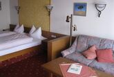 Das gemütliche Doppelzimmer (28qm) in erster und zweiter Etage ist mit Sitzecke und Flachbild-TV ausgestattet. Auf dem Süd-Balkon können Sie gemütliche Abende verbringen. Das Badezimmer verfügt über Dusche und WC. Eine Schlafcouch kann auf Wunsch als Zustellbett (3. Person) genutzt werden.