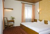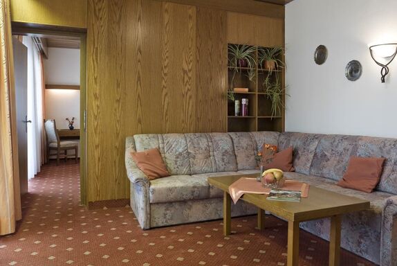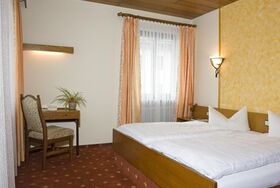 Das große Doppelzimmer (33qm) hat einen getrennten Wohn- und Schlafraum. Auf dem großen Balkon können Sie den Marktplatz überblicken. Im Badezimmer sind Badewanne und WC. Auf Wunsch kann im Wohnzimmer eine Schlafcouch als weiteres Bett verwendet werden.