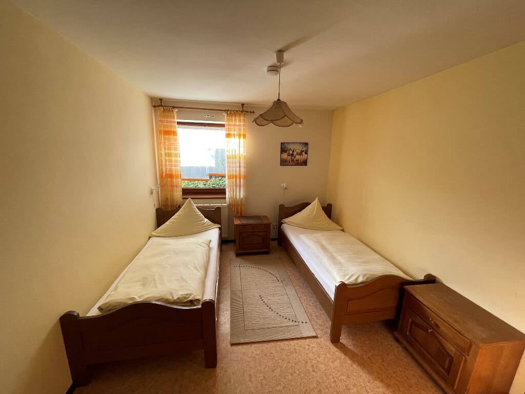 Die Anreise ist von 14:30 Uhr bis 17:00 Uhr möglich. Die Abreise ist von 09:00 Uhr bis 10:30 Uhr möglich. Andere An- und Abreisezeiten sind nach Rücksprache möglich. Die Schlüsselübergabe erfolgt persönlich vor Ort, oder bei Anreise nach 17:00 Uhr über Schlüsselkasten. Haustiere sind auf Anfrage erlaubt. Preis pro Hund = 10,- Euro pro Nacht. Ein Babybett ( kostenfrei ) oder ein Schlafsofa kann auf Anfrage ( Preis 15,- Euro pro Nacht ) zur Verfügung gestellt werden. Verpflegung (Brötchenservice, Frühstück, optional) Reitstunden können Sie gerne vor Ort von Tag zu Tag buchen. Parkplatz, WLAN, Endreinigung ist inklusive. Bettwäsche, Handtücher werden einmalig gestellt.
