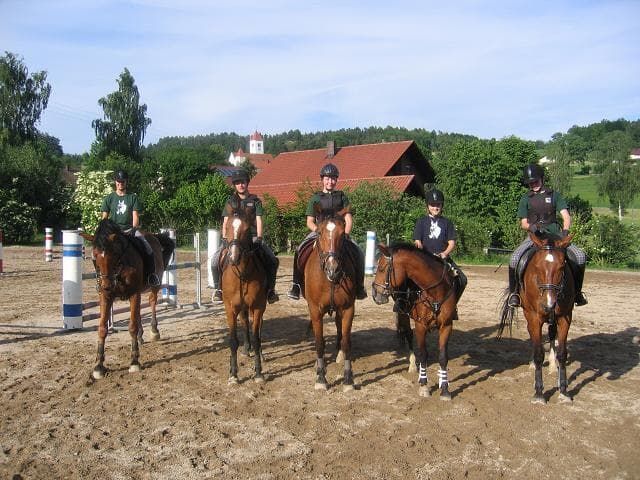 Qualifizierte FN-Reitlehrerinnen unterrichten Sie auf unseren 60 braven und gutausgebildeten Pferden/Ponys in 3 Reithallen + Freiplatz oder führen Sie auf einem erholsamen Ausritt in die herrliche Natur am Eixendorfer See.