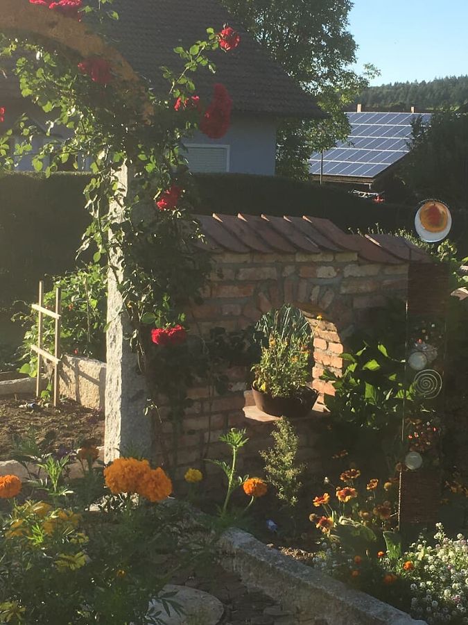 Übrigens: Ihr Co2-Abruck bei einen Urlaub bei uns ist sehr gering: Der Strom kommt von der eigenen PV-Anlage, die Wärme vom Nachbarn von der Bio-Gas, der Bahnhof ist nur 700 mtr entfernt, Ihr E-Auto tanken Sie bei uns von der Sonne (0,30 €/kw)  und zu guter Letzt: Das Holz für den Saunaofen kommt aus dem eigenen Wald.