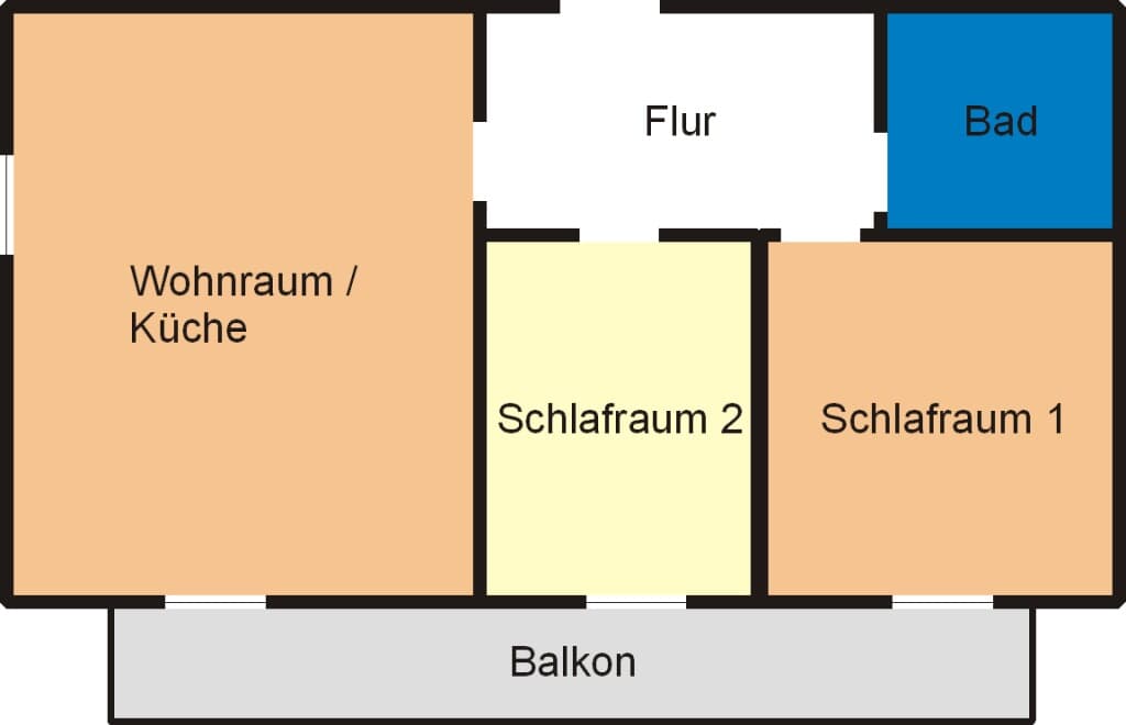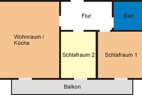 ca. 60 qm, Schlafraum mit Doppelbett und ein Schlafraum mit getrennten Betten. Der Wohn-, Koch und Essbereich ist im seperaten Raum.