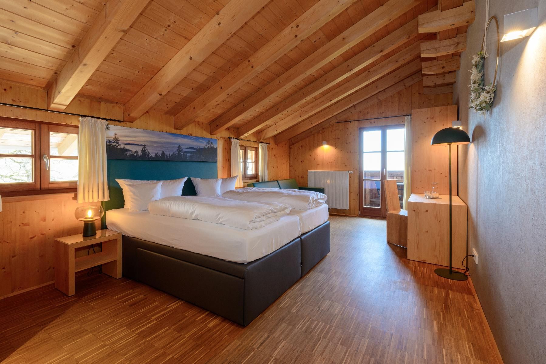An der Stelle eines alten, geschichtsträchtigen und verfallenen Bauernhauses wurde im Jahr 2010 das Bauernhaus Zum Heinrich errichtet. Bei dem Wiederaufbau war uns die Erhaltung des ursprünglichen Charakters sehr wichtig. Im Erdgeschoss befindet sich die Gaststube Heinrich, die den lebendigen Mittelpunkt der GutsAlm Harlachberg darstellt. Das als Gute Stube bezeichnete Obergeschoss bietet Ihnen zwei Doppelzimmer mit atemberaubendem Panoramablick.